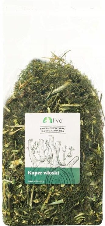 Suszony koper włoski 150g - superfood dla gryzoni i królików Tivo Producent: Tivo | Przysmak w 100% naturalny | Superfood | Opakowanie 150g Opis produktu: Spraw przyjemność swojemu pupilowi i podaruj mu pyszny suszony koper włoski ✅ Opakowanie 150g ✅ Przysmak w 100% naturalny ✅ Produkt superfood ✅ Działa rozluźniająco na przewód pokarmowy ✅ Zapobiega wzdęciom i zaparciom ✅ Idealny dla gryzoni i królików Postaw na naturalne przysmaki z Tivo W żywieniu zwierząt futerkowych warto uwzględniać naturalne przysmaki, takie jak kwiaty, zioła, owoce i warzywa, które odgrywają istotną rolę w ich dzikim środowisku. Te różnorodne składniki nie tylko dostarczają smakowych urozmaiceń, ale również wzbogacają ich dietę o różnorodne składniki odżywcze. Dodanie kwiatów do menu gryzonia lub królika może dostarczyć im dodatkowych witamin i minerałów, wspierając tym samym ich zdrowie. Zioła mogą wspomagać proces trawienia i ogólnie korzystnie wpływać na przewód pokarmowy. Owoce stanowią źródło naturalnych cukrów i witamin, które mogą dostarczyć zwierzakom energii. Warzywa z kolei są bogate w błonnik i inne substancje odżywcze, które mogą przyczynić się do ogólnego dobrostanu zwierząt futerkowych. Podając swoim pupilom naturalne przysmaki należy jednak pamiętać, aby dostosować ich ilości i rodzaje do indywidualnych potrzeb i gatunkowych wymagań zwierząt. Dobry smak i zdrowie w jednym Oferowany przez nas suszony koper włoski w opakowaniu 150g może już dziś stać się ulubionym przysmakiem Twojego pupila. Produkt jest w 100% naturalny i składa się wyłącznie z suszonego ziela kopru włoskiego, który zaliczany jest do grona roślin typu superfood i powinien być obowiązkowym elementem w diecie gryzoni i królików. Koper włoski podawany regularnie może skutecznie zapobiegać wzdęciom i zaparciom, ponieważ działa rozluźniająco na mięśnie przewodu pokarmowego. Produkt przeznaczony jest dla następujących gatunków zwierząt: królik, szynszyla, chomik, koszatniczka, świnka morska, mysz, szczur, myszoskoczek. Skład produktu: ✅ suszony koper włoski Składniki analityczne: ✅ włókno surowe 13,20% Galeria zdjęć
