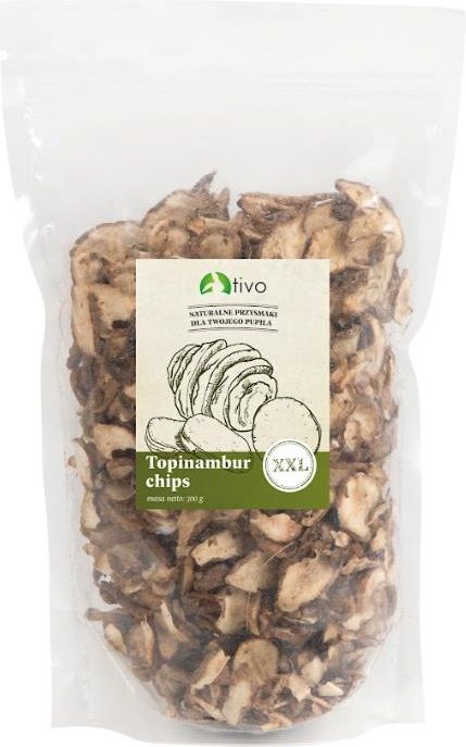 Suszony topinambur dla koszatniczki szynszyli 300g Tivo XXL Duża paka natur Producent: Tivo | Przysmak w 100% naturalny | Źródło witamin z grupy B | Opakowanie 300g Opis produktu - Przysmak Tivo Spraw przyjemność swojemu pupilowi i podaruj mu pyszne plasterki suszonego topinamburu Opakowanie 300g Przysmak w 100% naturalny Produkt niskokaloryczny Źródło wszystkich witamin z grupy B Pomaga w codziennym ścieraniu zębów Idealne dla gryzoni i królików Skład produktu suszony korzeń topinamburu Składniki analityczne włókno surowe 9,80% Postaw na naturalne przysmaki z Tivo - Naturalny pokarm dla gryzoni W żywieniu zwierząt futerkowych warto uwzględniać naturalne przysmaki, takie jak kwiaty, zioła, owoce i warzywa, które odgrywają istotną rolę w ich dzikim środowisku. Dodanie kwiatów do menu gryzonia lub królika może dostarczyć im dodatkowych witamin i minerałów, wspierając tym samym ich zdrowie. Zioła mogą wspomagać proces trawienia i ogólnie korzystnie wpływać na przewód pokarmowy. Owoce stanowią źródło naturalnych cukrów i witamin, które mogą dostarczyć zwierzakom energii. Warzywa z kolei są bogate w błonnik i inne substancje odżywcze, które mogą przyczynić się do ogólnego dobrostanu zwierząt futerkowych. Podając swoim pupilom naturalne przysmaki należy jednak pamiętać, aby dostosować ich ilości i rodzaje do indywidualnych potrzeb i gatunkowych wymagań zwierząt. Dobry smak i zdrowie w jednym - Przysmak dla gryzoni 300g Oferowany przez nas suszony topinambur w opakowaniu 300g może już dziś stać się ulubionym przysmakiem Twojego pupila. Produkt jest w 100% naturalny i składa się wyłącznie z suszonego korzenia topinamburu, który jest doskonałym źródłem wszystkich witamin z grupy B. Topinambur szczególnie polecany jest dla zwierząt mających problemy z wynikami krwi lub z pracą wątroby. Co więcej, suszony korzeń topinamburu pomaga królikom i gryzoniom w codziennym ścieraniu zębów. Produkt przeznaczony jest dla następujących gatunków zwierząt: królik, szynszyla, chomik, koszatniczka, świnka morska, mysz, szczur, myszoskoczek. Galeria zdjęć