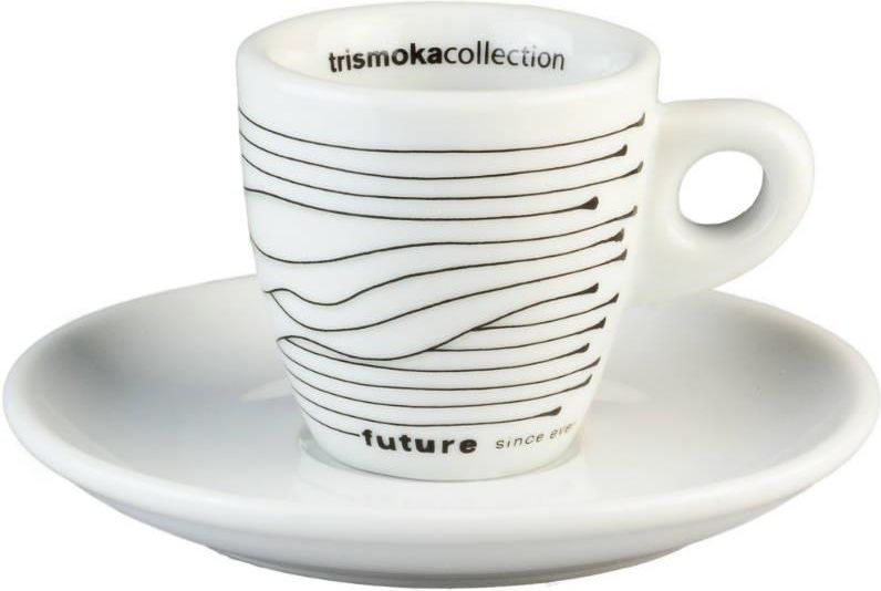 Klasyczna filiżanka do espresso, z grubej porcelany, o pojemności około50ml z logo palarni Trismoka oraz w czarno-białe wzory. Wysyłane losowo. Wyprodukowana przez fabrykę Club House . W komplecie wraz ze spodeczkiem.