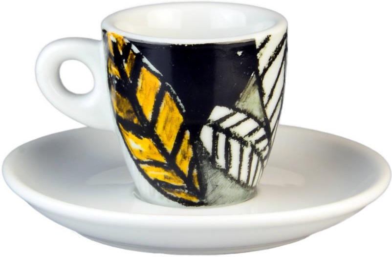 Klasyczna filiżanka do espresso, z grubej porcelany, o pojemności około 50ml z palarni Trismoka w 3 abstrakcyjne wzory. Wysyłane losowo. Wyprodukowana przez fabrykę Club House . W komplecie wraz ze spodeczkiem.