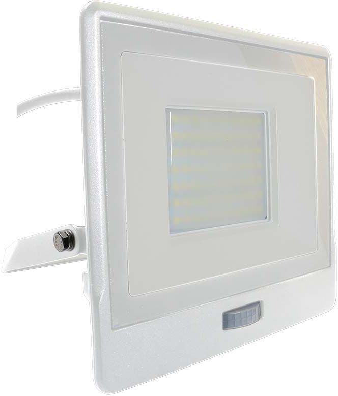 Naświetlacz LED 50W 4000lm 3000K IP65 Biały z czujnikiem ruchu i funkcją CUT-OFF Samsung Chip VT-158S-1-W V-TAC - 5 lat gwarancji Naświetlacz LED w kolorze białym marki V-TAC to nowoczesne oświetlenie, które cechuje się bardzo dobrą jakością emitowanego światła, wysoką trwałością, odpornością na ciężkie warunki atmosferyczne i uszkodzenia mechaniczne. Dzięki swoim kompaktowym wymiarom oraz niewielkiej wadze idealnie sprawdzi się jako zamiennik dużych, prądożernych halogenów tradycyjnych. Dodatkowo naświetlacz zapewnia oszczędność energii aż do 90% (w porównaniu z naświetlaczami z lampami halogenowymi). Reflektor LED V-TAC został wyposażony w energooszczędne źródło światła LED o mocy 50W, emituje ciepłe światło o temperaturze barwowej 3000K. Poprzez przezroczystą szybkę wydostaje się strumień świetlny na poziomie aż 4000lm, który zapewnia równomierne i dokładne oświetlenie tam, gdzie tego potrzebujesz. Oprawa LED dzięki ochronie wynoszącej IP65 jest odporna na pył i wodę zatem świetnie sprawdzi się nawet w wymagających warunkach. Naświetlacz LED posiada niezwykle przydatny czujnik PIR, który wykrywa ruch pod kątem nawet 120°. Czujnik wykorzystuje inteligentną technologię wykrywania i reaguje na ruchy, włączając i wyłączając światło po upływie zaprogramowanego czasu. Dodatkowo posiada unikalną funkcję CUT-OFF, dzięki której jesteśmy w stanie przełączyć projektor w tryb ciągłego działania. Wystarczy jedynie przez chwilę wyłączyć urządzenie, a następnie szybko włączyć, co uruchomi tryb CUT-OFF. Projektor potwierdzi przyjęcie trybu za pomocą krótkiego mignięcia. Projektor LED zbudowany został z wysokiej jakości aluminium, który jest bardzo odporny na korozje. Posiada również wbudowany zasilacz prądu stałego. Reflektor LED idealnie spełni swoje zadanie: na terenach budowy, na parkingach, w ogrodach oraz na balkonach, w strefach publicznych, na obiektach sportowych, na podjazdach. Produkt wykonany został z wysokiej jakości materiałów, zapewniających jego długotrwałą żywotność i satysfakcję z zakupu. Kupując u nas, otrzymujesz nowy, oryginalnie zapakowany produkt, objęty 5-letnią gwarancją producenta. Tylko zakup markowych produktów gwarantuje wysoką jakość, energooszczędność, bezpieczeństwo użytkowania oraz pewność, że informacje umieszczone na opakowaniach będą zgodne z prawdą. Zapraszamy do sprawdzenia naszych pozostałych ofert dotyczących naświetlaczy LED z czujnikiem.