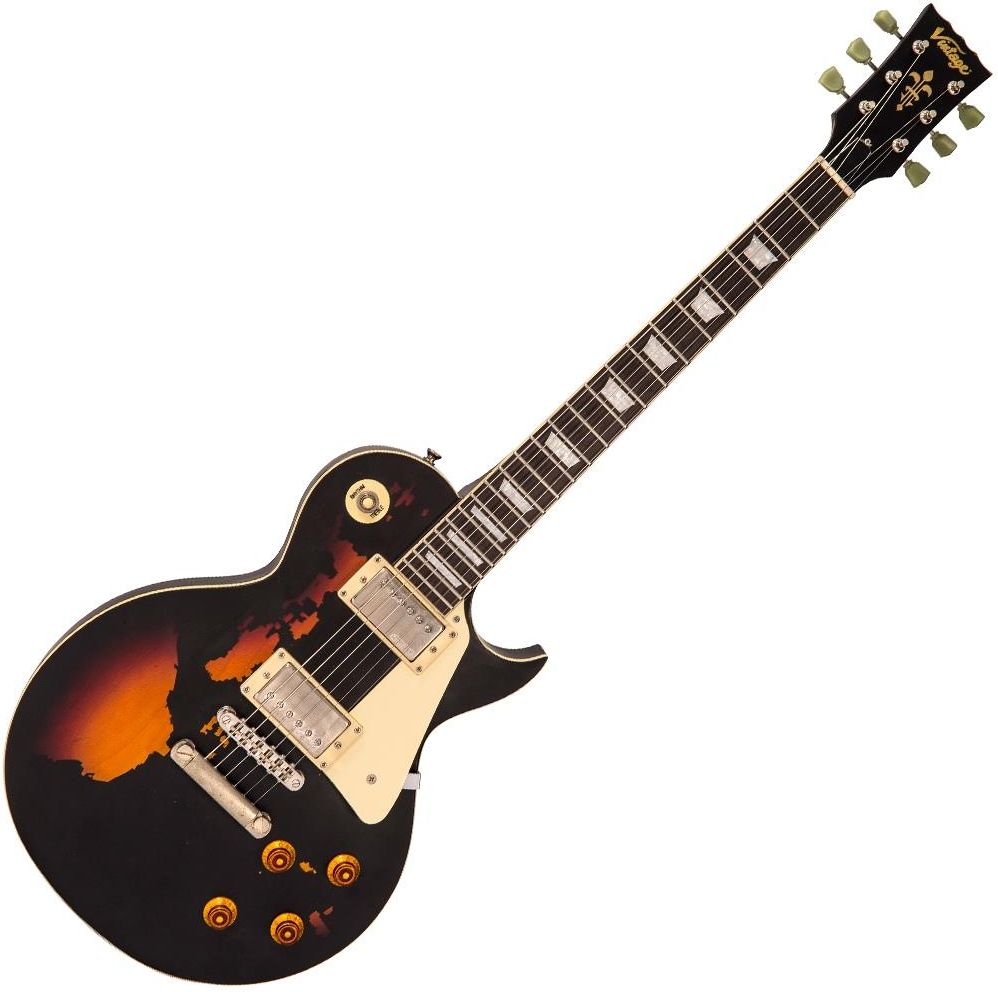 *Mikroryski. W celu uzyskania większej ilości informacji na temat tego egzemplarza, prosimy o kontakt: RIFF KRAKÓW RYNEK PODGÓRSKI - 12 257 14 48 RIFF RZESZÓW - 17 853 43 32 Gitara elektryczna Vintage V100 to instrument z serii Vintage Reissued, której celem jest przekazać Ci niezawodny instrument oparty na legendarnych modelach z historii rocka, wzbogacony o nowoczesne i praktyczne rozwiązania techniczne.Z gitarą V100 w rękach możesz dumnie wkroczyć do świata muzyki rockowej i bez wstydu postawić pierwsze kroki na sali prób, które zaprowadzą Cię na największe sceny muzycznych festiwali. Możesz być pewny, że ten instrument nie będzie odstawał poziomem od sprzętu kolegów z zespołu (chyba, że na plus), a odpowiadając na klasyczne pytanie “ile za nią dałeś”, zobaczysz znaczące, pełne uznania kiwnięcia głową, świadczące o tym, że gitara jest warta więcej, niż sugerowała metka z ceną. W mahoniowym korpusie tej gitary zamontowano dwa humbuckery firmy Wilkinson, które są odpowiedzialne za jej wspaniały, współczesny dźwięk oraz prawie nieskończony sustain. Od bluesa na przetworniku przy mostku, przez arpeggia na obu, aż do ostrego rocka na przystawce przy gryfie, V100 to gitary które zaskoczą każdego swoim uniwersalnym zastosowaniem. Niezależnie od tego, czy szukasz swojej pierwszej, czy ostatniej gitary, każda gitara z serii Vintage ReIssued jest tą, którą zatrzymasz na dłużej. Zyskaj przewagę na starciePoczątki nauki gry bywają ciężkie, ale z gitarą elektryczną Vintage V100MRBK możesz być pewien, że dasz sobie radę. Instrumenty serii Icon wyposażone są w szereg usprawnień, które na tyle, na ile to możliwe, wesprą Cię w trudnych momentach. Nie będziemy Cię okłamywać. Większość pracy będziesz musiał wykonać sam, ale przecież dasz radę. Każda legenda ma swój początek w trudnych początkach i żmudnych próbach. Gryf o profilu “miękkiego C” zapewni Ci komfort chwytania akordów i ułatwi szybką grę w partiach solowych. Klucze Wilkinson Tulip Deluxe będą długo trzymać gitarę w odpowiednim stroju, abyś nie musiał co chwilę dostrajać instrumentu i mógł skupić się na tym co istotne. Mostek Wilkinson Tune-O-Matic zapewni Ci prawidłową intonację na całej długości gryfu, dzięki czemu unikniesz kompromitujących problemów z niedostrojonymi dźwiękami w wyższych rejestrach podstrunnicy. Pickupy Wilkinson MWVC będą Twoją potężną bronią do kreowania uzależniającego brzmienia. Ściana dźwięku? Wrzeszczące solo? Rzewny blues, a może skoczny funk? Przy odpowiednim ustawieniu potencjometrów osiągniesz każde z nich i wiele więcej. SPECYFIKACJA: Korpus Mahoń Gryf Mahoń Konstrukcja Soft "C" Podstrunnica Lignum Rosa Radius 305mm Menzura 628mm Progi 22 Medium Jumbo Przetworniki 2x Wilkinson MWVC Kontrola 2x Volume, 2x Tone, 3-way switch Mostek Wilkinson T.O.M. Siodełko 43mm Graphtech NuBone Klucze Tulip Deluxe Kolor Distressed Over Sunburst