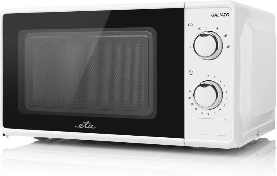 Kuchenka mikrofalowa ETA Galiato 221090000 Klasyczna kuchenka mikrofalowa ETA Galiato z równomiernym rozprowadzaniem mikrofal. Możliwość wyboru idealnego programu Kuchenka mikrofalowa ETA Galiato, o mocy 1100 W, to klasyczny model z mechaniczną regulacją czasu i mocy. Dzięki pojemności 17 litrów i systemowi równomiernego rozprowadzania mikrofal, będzie ona niezastąpionym pomocnikiem w każdej kuchni. Główne zalety ETA Galiato Kuchenka mikrofalowa ETA Galiato wyróżnia się prostym sterowaniem mechanicznym oraz nowoczesnym wyglądem. Do dyspozycji jest 5 poziomów mocy oraz 1 program do rozmrażania. Funkcja ta pomoże szybciej przygotować jedzenie z zamrażarki, do dalszej obróbki termicznej. Dostępny jest również czasomierz, z możliwością regulacji do 30 minut, który powiadomi, gdy jedzenie będzie gotowe. System równomiernego rozprowadzania mikrofal 6 poziomów mocy (w tym 1 program do rozmrażania) Funkcje rozmrażania, podgrzewania i gotowania Timer z możliwością regulacji do 30 minut Sygnał dźwiękowy powiadamia o zakończeniu pracy Wbudowane podświetlenie Automatyczne wyłączanie po otwarciu drzwiczek Otwieranie drzwi za pomocą przycisku Moc mikrofal: 700 W Pojemność: 17 l Za pomocą pokrętła możesz łatwo dostosować czas pracy modelu ETA Galiato do swoich potrzeb. Możesz go ustawić nawet na 30 minut. Dodatkowo sygnał ostrzega, gdy podgrzewanie zakończy się. Moc idealnie dobrana do określonej potrawy Kuchenka mikrofalowa ETA Galiato oferuje 6 poziomów mocy, dzięki temu otrzymasz idealnie podgrzane danie. Niezastąpiona w każdym domu Model ETA Galiato sprawdzi się podczas dowolnej obróbki termicznej. Ma on elegancką, czarną obudowę, więc będzie świetną ozdobą każdej kuchni. Dodatkowo, dzięki kompaktowym wymiarom, zmieści się nawet na niewielkiej przestrzeni. W jej wnętrzu, można umieścić talerz o średnicy do 24,5 cm. Wygodna obsługa Kuchenka mikrofalowa ETA Galiato ma wbudowany system bezpieczeństwa, który automatycznie wyłączy kuchenkę, po otwarciu drzwiczek. Przycisk ten, znajduje się na dole panelu sterowania. Przestrzeń wewnętrzna została wyposażona we wbudowane podświetlenie, które ułatwia kontrolę kolejnych etapów podgrzewania. Nowoczesny wygląd Kuchenka mikrofalowa ETA Galiato dostępna jest w dwóch kolorach. Wybierz, ten który bardziej Ci się podoba i lepiej będzie pasował do twojego wnętrza: czarny lub biały. ETA dla modelu Galiato ETA221090010/00 zapewnia przedłużoną, 5-letnią gwarancję. Łatwe utrzymanie w czystości Czyszczenie modelu ETA Galiato jest wyjątkowo proste oraz wygodne i pozwala na zachowanie nieskazitelnej czystości. Wymiary produktu: Wysokość (cm) 24,00 Szerokość (cm) 44,50 Głębokość (cm) 34,50 Waga (kg) 10,00