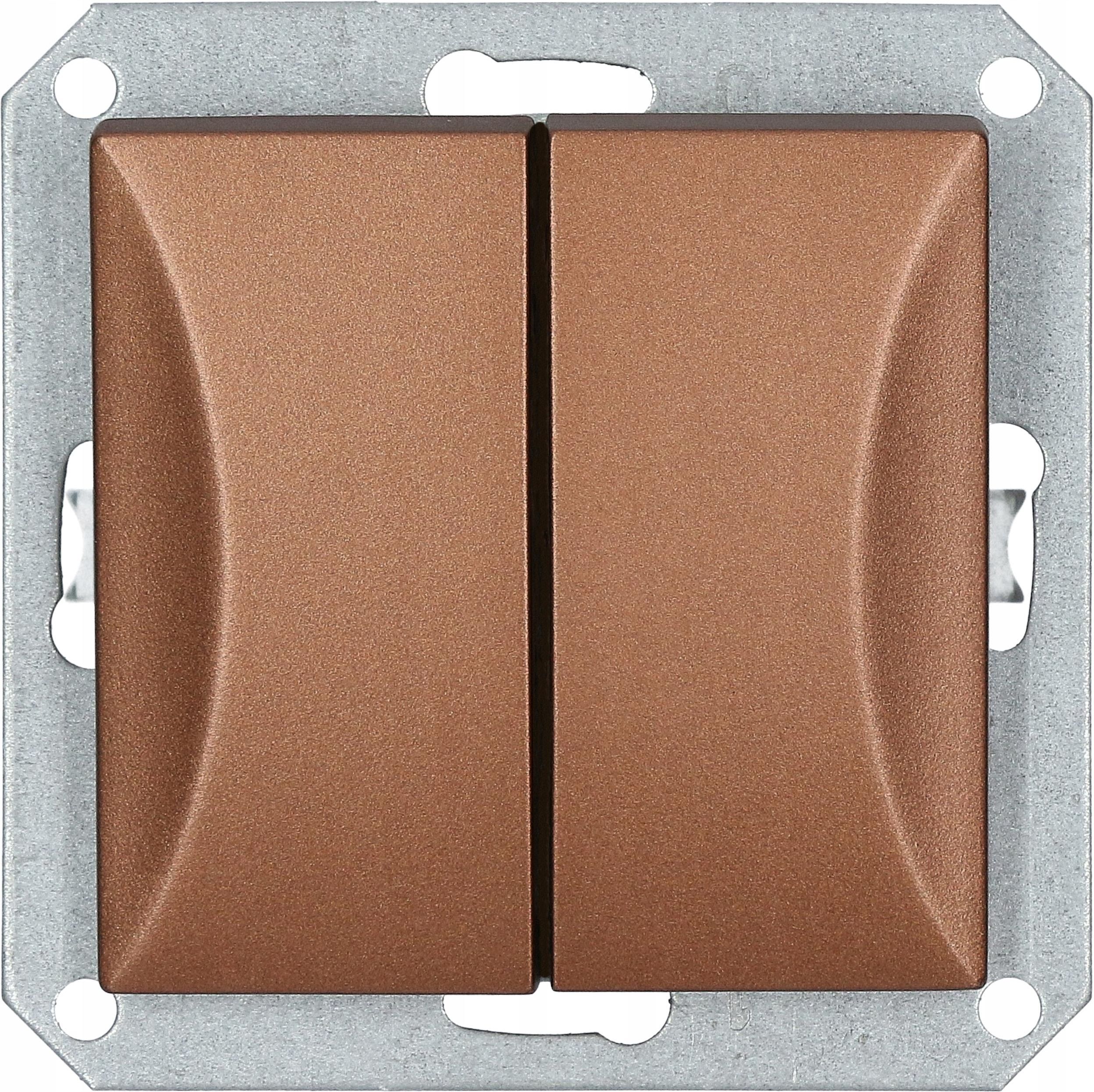 Wyłącznik żaluzjowy Serii OPAL w kolorze miedzianym. Model: WP-10 Op Moduł miedź Moduł wyłącznika bez ramki. Parametry wyłącznika: Napięcie maksymalne: 250V Obciążenie maksymalne: 10A Montaż przewodów: zaciski śrubowe Montaż wyłącznika: puszka podtynkowa Ø60 Rodzaj materiału: tworzywo ABS Seria modułowa, można montować w ramkach wielokrotnych dostępnych na naszych aukcjach. Pasuje tylko do ramek serii Opal. Stopień ochrony w oferowanym wyłączniku to IP20. Produkt polskiej produkcji. Spełnia europejskie normy CE, posiada certyfikaty oraz świadectwa zgodności. Wyłącznik żaluzjowy (bistabilny, z podtrzymaniem). Standardowy wyłącznik do obsługi rolet, żaluzji, vertikali. Działa na zasadzie przełącznika. Łącznik posiada mechanizm z blokadą mechaniczną nie pozwalająca na jednoczesne załączenie dwóch kierunków. Łącznik należy stosować do rolet oraz żaluzji wyposażonych w silniki konwencjonalne wraz z łącznikami krańcowymi. Producentem produktu jest firma Timex-Elektro.