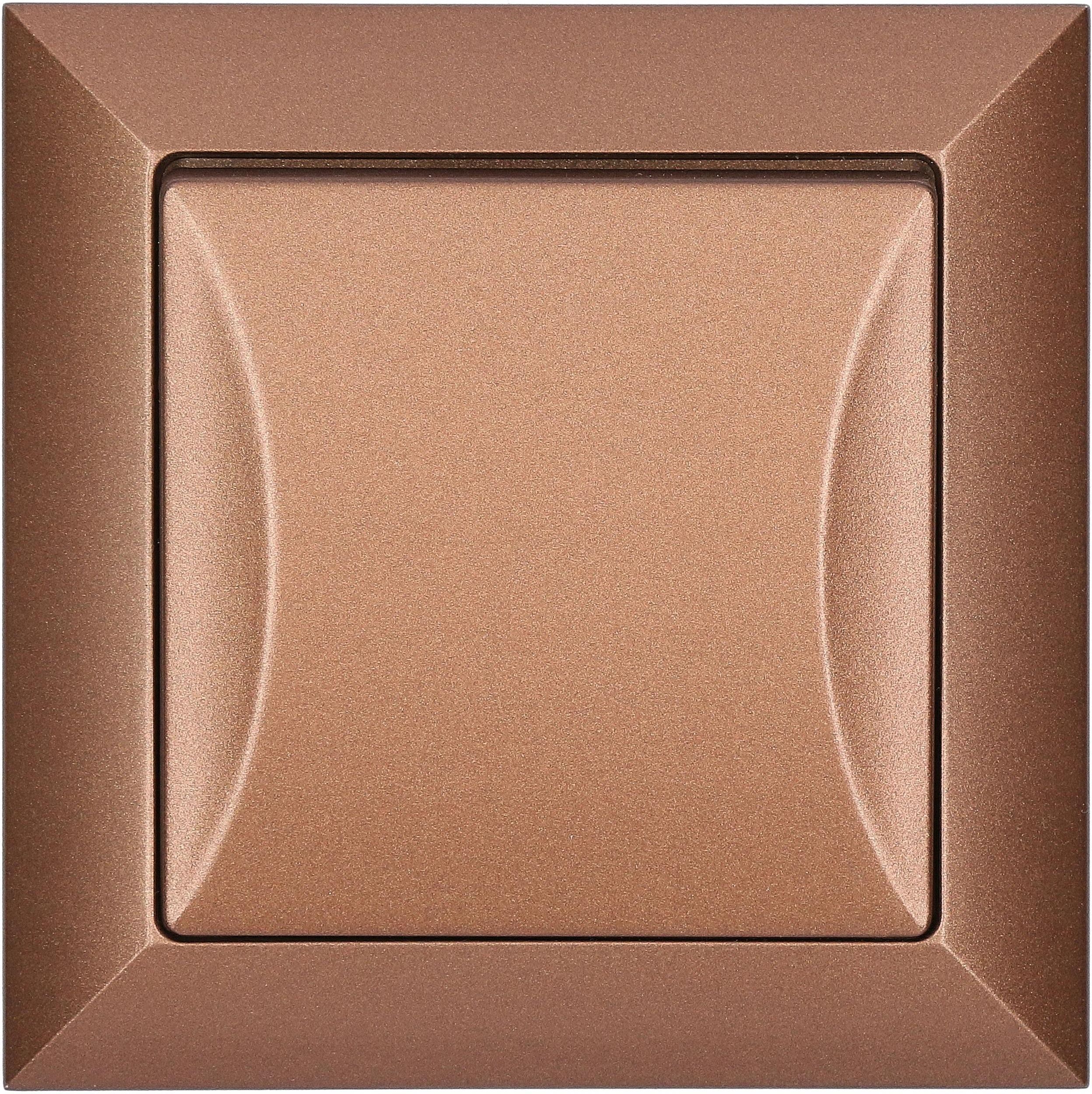 Wyłącznik zwierny (dzwonek) z podświetleniem Serii OPAL w kolorze miedzianym. Model: WP-6/7 Op/S miedź Wyłącznik w komplecie z ramką pojedynczą. Parametry wyłącznika: Podświetlenie za pomocą neonówki umieszczonej pod klawiszem Napięcie maksymalne: 250V Obciążenie maksymalne: 10A Montaż przewodów: zaciski śrubowe Montaż wyłącznika: puszka podtynkowa Ø60 Wymiary: 81 x 81 mm Rodzaj materiału: tworzywo ABS Seria modułowa, można montować w ramkach wielokrotnych dostępnych na naszych aukcjach. Stopień ochrony w oferowanym wyłączniku to IP20. Produkt polskiej produkcji. Spełnia europejskie normy CE, posiada certyfikaty oraz świadectwa zgodności. Producentem produktu jest firma Timex-Elektro.