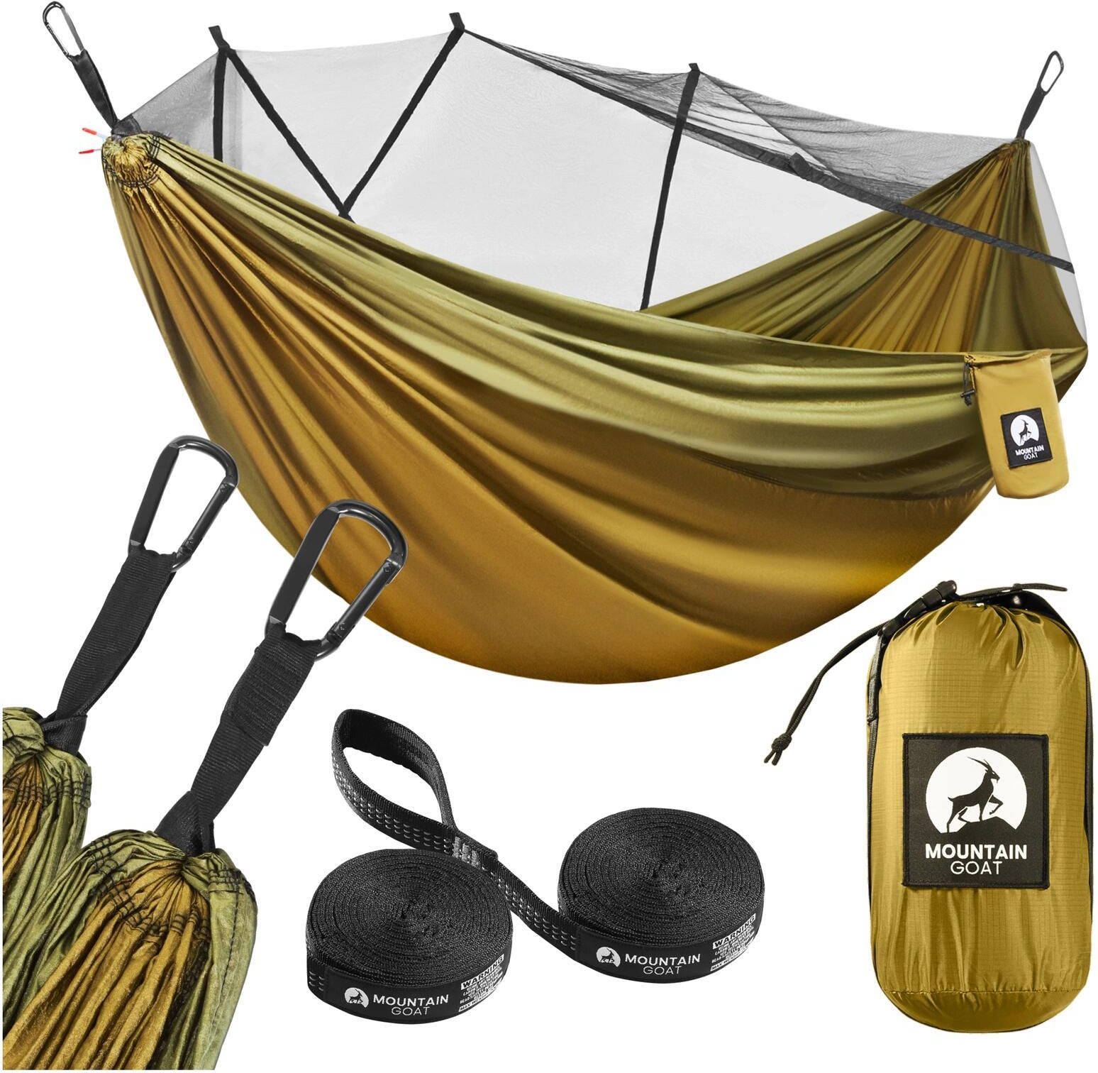 HAMAK OGRODOWY DWUOSOBOWY TURYSTYCZNY Z MOSKITIERĄ MOCNY WIĄZANY HUŚTAWKA Hamak turystyczny z moskitierą MOUNTAIN GOAT dwuosobowy zielony Marzy Ci się trekking i podróżowanie bez ograniczeń? Chcesz mieć swobodę podczas dalekich wypraw i komfort wypoczynku? Chyba każdy miłośnik outdooru powie, że …