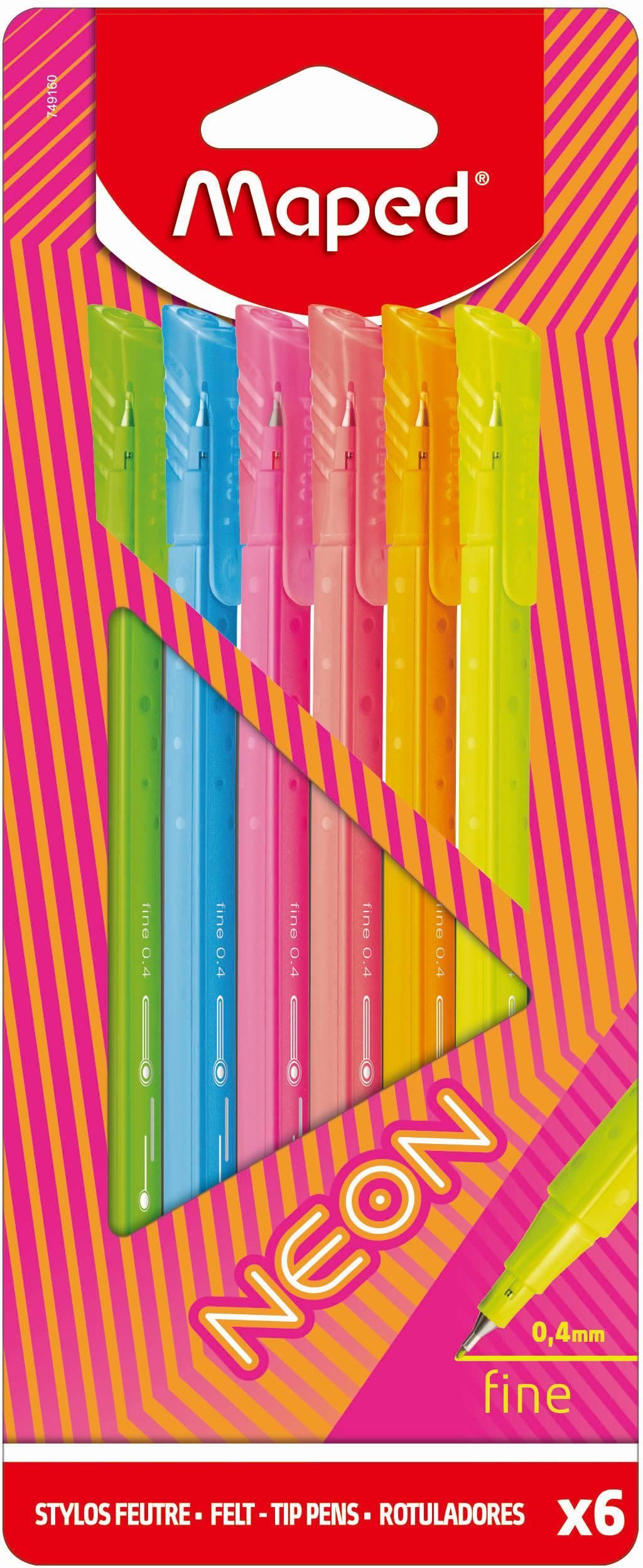 Cienkopis Graph Peps Neon 6 kolorów Neonowy trend niezmiennie urzeka. Nowa kolekcja Maped Neon podąża w tym kierunku. Żywa i przyciągająca wzrok paleta kolorów jest idealnym wyborem dla wszystkich tych, którzy są gotowi odważnie wyrazić siebie. Nasycone i soczyste kolory dodają rysunkom, notatkom i …