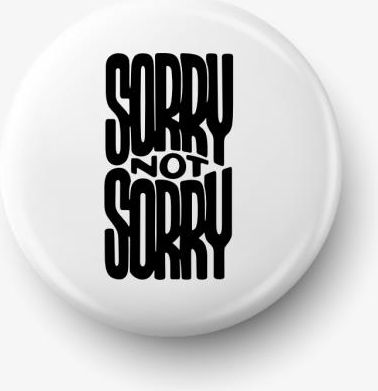 Przypinka z napisem dla tych, którzy nigdy nie przepraszają.