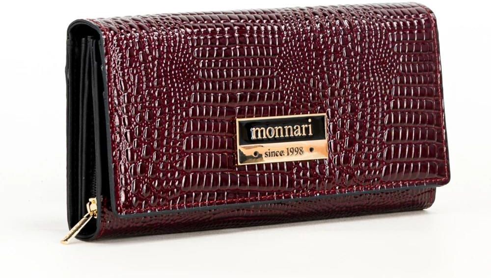 Duży portfel damski skórzany Monnari burgund skóra węża – elegancki i pojemny Michałowo
