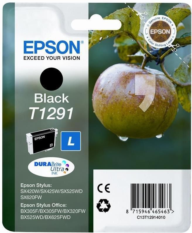 EPSON SINGLEPACK BLACK T1291 DURABRITE ULTRA INK Atrament DURABrite Ultra zapewnia wysoką jakość dokumentów biznesowych oraz zdjęć o jakości jak ze studia fotograficznego, które są odporne na działanie wody, powstawanie smug i blaknięcie. Oszczędzaj dzięki oddzielnym wkładom atramentowym Pojedyncze wkłady Epson zapewniają większe oszczędności, ponieważ pozwalają wymienić tylko zużyty kolor.   Atramenty Epson są zoptymalizowane do współpracy z drukarkami Epson