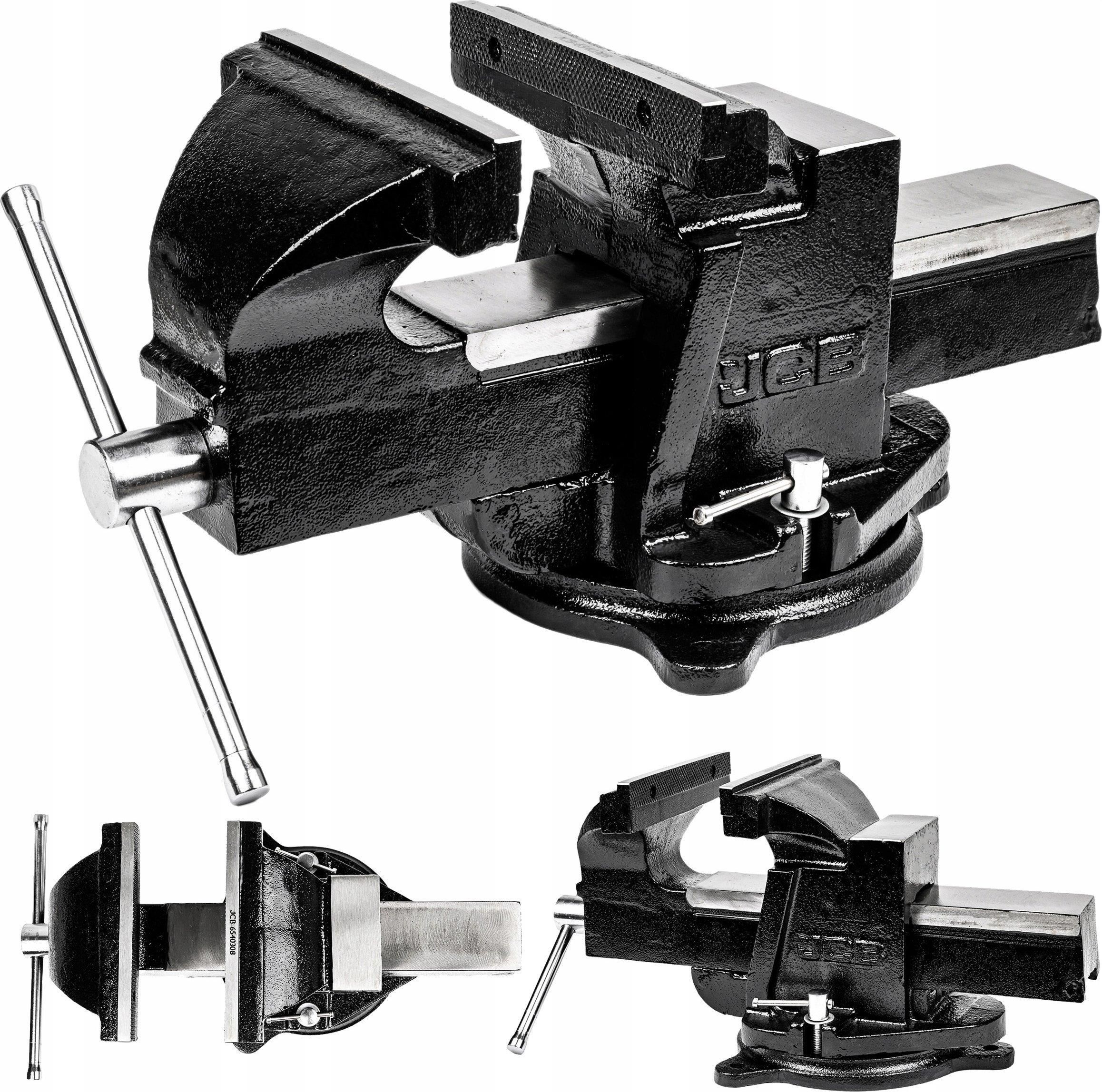 Profesjonalne imadło ślusarskie 200mm obrotowe stalowe JCB Jesteśmy autoryzowanym dystrybutorem marki JCB w Polsce. JCB to angielska marka działająca od 1945 roku słynąca z najwyższej jakości maszyn i pojazdów budowlanych, rolniczych i agregatów prądotwórczych. W 2023 roku oferta firmy została poszerzona o wysokiej klasy serię narzędzi warsztatowych i budowlanych. Sprzęt zakupiony u nas jest w 100% oryginalnym produktem który z pewnością spełni Państwa oczekiwania! Imadło ślusarskie do mocowania przedmiotów poddawanych obróbce ręcznej, z obrotową podstawą umożliwiającą obrócenie imadła o 360 stopni. Imadło obrotowe pokryte antykorozyjną farbą piecową zwiększającą twardość i odporność na pękanie. Wykonanie z prawdziwej STALI, nie z żeliwa, która gwarantuje zachowanie najlepszych parametrów twardości i odporności na pękanie. Imadło ślusarskie obrotowe jest niezastąpione w warsztatach, zakładach mechanicznych, serwisach, jak i do prywatnego użytku. Imadło obrotowe, stalowe 200 mm Szeroka i solidna podstawa przykręcana na 3 śruby Możliwość uchwytu płaskiego, uchwytu do rur oraz kowadła Możliwość obracania imadła względem podstawy o 360 stopni