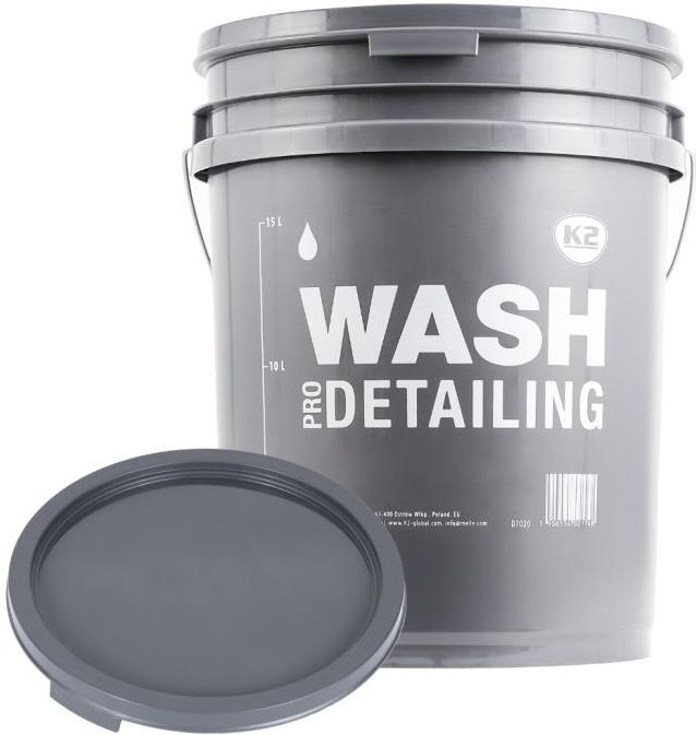 K2 WIADRO WASH DETAILINGOWE DO MYCIA AUTA 20L (D7020) K2 Szare wiadro detailingowe "WASH" 20L – profesjonalne do mycia samochodu Szare wiadro detailingowe K2 "WASH" o pojemności 20 litrów to niezastąpione narzędzie każdego fana czystego lakieru. Wykonane z wyjątkowo trwałego tworzywa HDPE, odpornego na uderzenia, chemikalia i wysokie temperatury, idealnie sprawdza się podczas bezpiecznego mycia auta. Z wyraźnym oznaczeniem „WASH” przeznaczone jest do przygotowania roztworu szamponu. Zalecamy stosowanie razem z niebieskim wiadrem K2 "RINSE" i mycie techniką na dwa wiadra – to najskuteczniejszy sposób, by ograniczyć ryzyko powstania mikrozarysowań. Główne zalety i korzyści Duża pojemność 20L – pozwala na efektywne mycie całego pojazdu Tworzywo HDPE – wytrzymałe i odporne na środki chemiczne Wyraźne oznaczenie „WASH” – dla maksymalnej wygody i bezpieczeństwa Wbudowana podziałka – ułatwia dozowanie wody i szamponu Solidny metalowy uchwyt – wygodne przenoszenie nawet pełnego wiadra Kompatybilne z pokrywą (funkcja siedziska) i separatorem brudu Po założeniu pokrywy może służyć jako siedzisko Pojemność: 20L Oferta dotyczy samego wiadra 20L z pokrywką. Separator brudu, rękawica, wash pad oraz szampony dostępne są w innych naszych ofertach. Umieszczony na dnie, skutecznie zatrzymuje zanieczyszczenia i zapobiega ich ponownemu nabieraniu przez rękawicę. Sposób użycia "Technika na dwa wiadra" – myj bezpieczniej Szare "WASH" wiadro napełnij wodą z szamponem Niebieskie wiadro "RINSE" napełnij czystą wodą do płukania rękawicy, gąbki lub pada. Umieść separatory brudu K2 w obu wiadrach Po każdym kontakcie gąbki, rękawicy lub pada z karoserią, wypłucz ją w wiadrze do płukania. Na wypłukaną rękawicę lub gąbkę nabierz wodę z szamponem i kontynuuj mycie. Metoda mycia na dwa wiadra, znacząco zmniejsza ryzyko zarysowań lakieru, ponieważ brud i drobiny piasku zostają na dnie wiader i nie wracają na powierzchnię auta po kolejnym nabraniu wody z szamponem. Wysoki rant od strony dna, sprawia że nie ma ryzyka uszkodzenia wiadra np przez leżący kamień na podłodze.