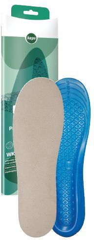 Żelowe wkładki Kaps Relaxus+ to produkt polecany dla osób wykonujących pracę w pozycji stojącej oraz dla sportowców. Produkt zapewnia ochronę dla wrażliwych miejsc w przodostopiu, zwłaszcza głowy kości śródstopia, łagodzi ból i absorbuje mikrowstrząsy. Charakterystyka: Wkładki eliminują ból spowodowany działaniem twardego podłoża, zapobiegają bólom stóp i dolnego odcinka kręgosłupa. Wkładki pokryte są przyjemną w dotyku tkaniną, która zwiększa komfort ich użytkowania. Mają dwie wielkości: damska, męska, z których należy wyciąć właściwy rozmiar. Szablon rozmiarów znajduje się na spodniej stronie wkładki. Zastosowanie: Izolują od twardego podłoża. Absorbują wstrząsy. Zmniejszają bolesność i odczucie zmęczenia stóp. Dopasowują się do kształtu podeszwowej strony stóp, zwiększając powierzchnię ich podparcia. Redukują naciski na podeszwowej stronie stóp w okolicy głów kości śródstopia. Sposób użycia: Przeznaczone do wielokrotnego użycia. Stopa powinna przylegać bezpośrednio do tkaniny. Wkładki można myć wodą z mydłem. Zawartość opakowania: Żelowe wkładki męskie 40/46. Producent: Kaps Sp. z o.o. ul. Przemysłowa 40, 32-765 Rzezawa