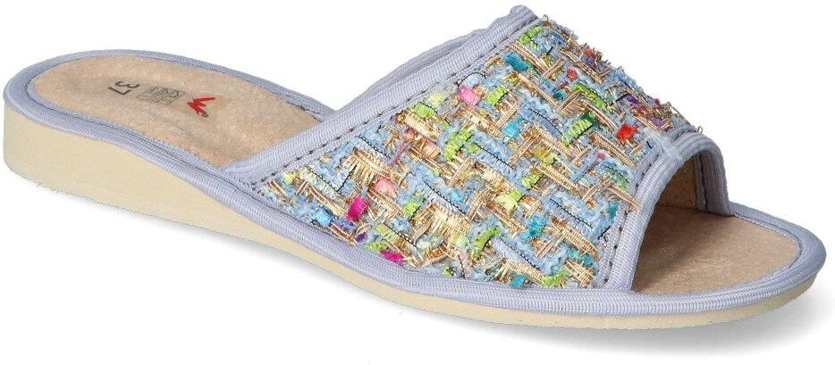 Kapcie Wójciak to idealny wybór dla osób, które pragną cieszyć się wygodą i modnym wyglądem w swoim domu. Wykonane z wysokiej jakości materiału tekstylnego, te kapcie są lekkie i przewiewne, co zapewnia komfort noszenia przez cały dzień. Kolorowy wzór i estetyczne wykończenie sprawiają, że kapcie te doskonale komponują się z różnorodnymi stylizacjami.Dodatkowo, kapcie Wójciak posiadają skórzaną wkładkę, która dba o zdrowie stóp, zapewniając im odpowiednie wsparcie. Dzięki ergonomicznej konstrukcji, kapcie te minimalizują zmęczenie stóp, co czyni je doskonałym wyborem na długie godziny spędzone w ruchu. Praktyczny design z otwartym przodem ułatwia zakładanie i zdejmowanie, co czyni je idealnym obuwiem do codziennego użytku.Wybierając kapcie Wójciak, inwestujesz w wysoką jakość i styl, które sprawią, że poczujesz się komfortowo w swoim domowym zaciszu. To obuwie, które łączy w sobie funkcjonalność oraz estetykę, idealne na każdą porę roku.