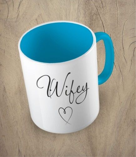Kubek dla żony na prezent - naczynie z kolorowym wnętrzem i uszkiem z napisem "wifey" - "żoneczka".