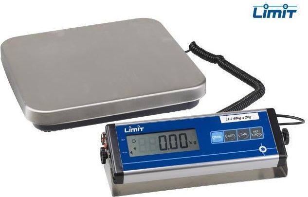 Opis produktuDane techniczne Limit Elektroniczna WAGA DO PACZEK, ze wskazaniem cyfrowym. Płyta wagowa i wyświetlacz stanowią oddzielne moduły. Moduł wyświetlacza można używać w formie wolnostojącej albo na uchwycie ściennym/stojaku podłogowym. Duży, czytelny wyświetlacz szerokokątny LCD, z cyframi o wysokości 25 mm i z podświetlaniem. Przyciski funkcyjne do zerowania, wyboru jednostek, tarowania, wyboru netto/brutto. Płyta wagowa ze stali nierdzewnej. Zasilanie sieciowe lub akumulatorowe. Dostarczana z ładowarką i akumulatorem. Żywotność baterii do 80 godzin. Nr katalogowy 10929-0031 10929-0056 10929-0072 10929-0098 10929-0197 Szerokość płyty wagowej 315 mm 315 mm 315 mm 350 mm 600 mm Długość płyty wagowej 325 mm 325 mm 325 mm 450 mm 600 mm Podział/rozdzielczość, nie weryf. 10 g 20 g 50 g 50 g 100 g Masa 3,8 kg 3,8 kg 3,8 kg 6,8 kg 12,4 kg Wydajność 30 kg 60 kg 150 kg 150 kg 300 kg Oznaczenie producenta LE2-30 LE2-60 LE2-150 LE3-150 LE4-300 Dokładność ±10 g ±20 g ±50 g ±50 g ±100.0 g Ilość/opak. 1 1 1 1 1 Opakowanie 1 1 1 1 1