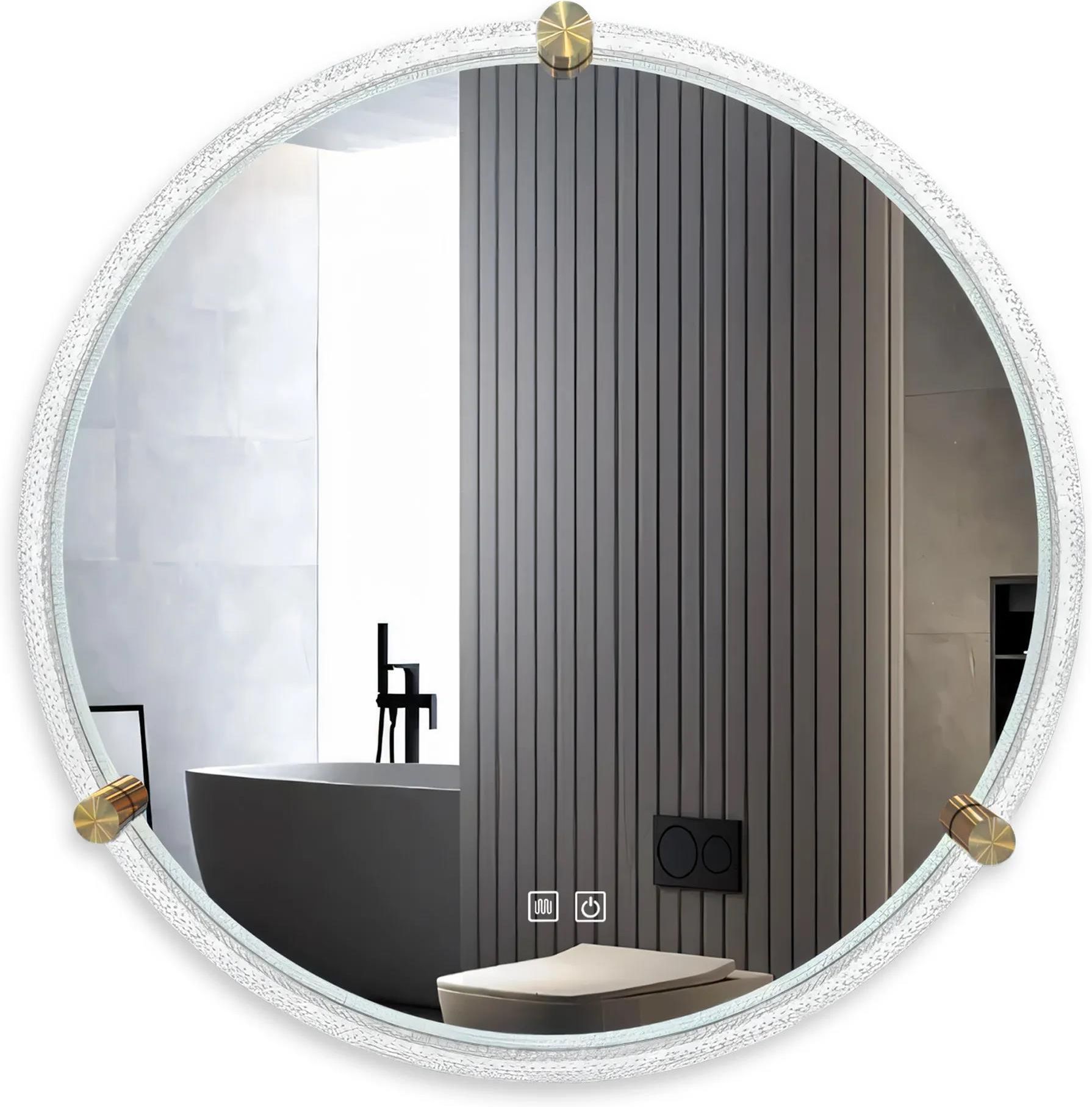 LUSTRO LED ZŁOTA RAMA REA 106 KRYSZTAŁOWE OKRĄGŁE PODŚWIETLANE 60x60 cm Lustro LED REA® 60 cm – Elegancja i Technologia w Jednym Połącz styl z funkcjonalnością dzięki okrągłemu lustru LED REA® z dekoracyjną ramą o kryształowej strukturze. Ten nowoczesny dodatek nie tylko dopełnia wystrój łazienki …