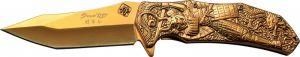 Nóż składany Długość ostrza 95 mm Ostrze ze stali nierdzewnej pokrytej azotkiem tytanu Długość całkowita 216 mm Uchwyt stalowy pokryty azotkiem tytanu Kieszonkowy klips