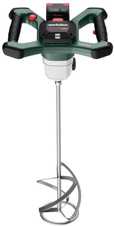 RW 18 LTX BL 140-2 (601165850) Mieszarka akumulatorowa Uniwersalna, dwubiegowa mieszarka akumulatorowa do efektywnego mieszania do 50 litrów materiału SafetyStop zapewniający bezpieczną i czystą pracę: szybkie wyłączenie podczas pracy w trybie ciągłym w przypadku zablokowania lub utraty kontroli Szybkie zatrzymanie po zwolnieniu przełącznika przyspieszenia Wysoki moment obrotowy dzięki przekładni dwubiegowej umożliwiającej obróbkę materiałów gęstych Mocny silnik bezszczotkowy zapewnia najwyższą efektywność i długi czas działania akumulatora Pełnookresowa elektronika Vario-Tacho-Constamatic (VTC) z pokrętłem nastawczym: umożliwia dostosowanie prędkości obrotowej do rodzaju obrabianego materiału i utrzymanie jej na stałym poziomie pod obciążeniem Elektroniczna funkcja łagodnego rozruchu zapobiega rozchlapaniu materiału podczas pracy Zabezpieczenie przeciążeniowe: chroni silnik przed przegrzaniem Komfortowe prowadzenie dzięki gumowanym, ergonomicznym rękojeściom i wyważonemu środkowi ciężkości Bezpieczne umiejscowienie akumulatora pomiędzy rękojeściami i dobry widok na wskaźnik stanu naładowania Gumowe narożniki obudowy chronią przed uszkodzeniami i umożliwiają bezpieczne odłożenie urządzenia oraz jego oparcie o ścianę bez ryzyka ześlizgnięcia Wiele marek, jeden system akumulatorowy: ten produkt można łączyć z wszystkimi akumulatorami 18 V i ładowarkami marek CAS Parametry: Napięcie akumulatora 18 V Prędkość obrotowa na biegu jałowym 0 - 280 / 0 - 610 /min Biegi 2 Maksymalna średnica mieszadła 140 mm Maks. zalecana ilość mieszania 50 l Uchwyt narzędziowy Gwint wewnętrzny M 14 Ciężar bez akumulatora 4.2 kg Ciężar z akumulatorem 4.8 kg Mieszadło typu RS-R3 (Ø 140 mm) Przedłużka Klucz płaski bez akumulatora, bez ładowarki