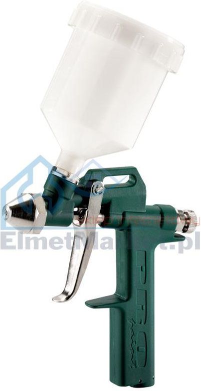 Uwaga! Produkt ten podlega rozszerzonej 3-letniej gwarancji XXL. Warunkiem przedłużenia gwarancji jest zarejestrowanie urządzenia za pośrednictwem Internetu na stronie www.metabo-service.com/pl/ w terminie 4 tygodni od daty zakupu. Charakterystyka produktu: Kompaktowy, bardzo poręczny pistolet malarski do małych powierzchni, idealny przy naprawach Dane techniczne: Ciśnienie robocze (bar): 3,5 Zapotrzebowanie powietrza (l/min): 50 - 100 Waga (kg): 0,2 Wyposażenie standardowe: Złączka wtykowa EURO i ARO/Orion 1/4`` Zbiornik grawitacyjny z tworzywa sztucznego 0,1 l Dysza strumienia okrągłego Ø 1 mm