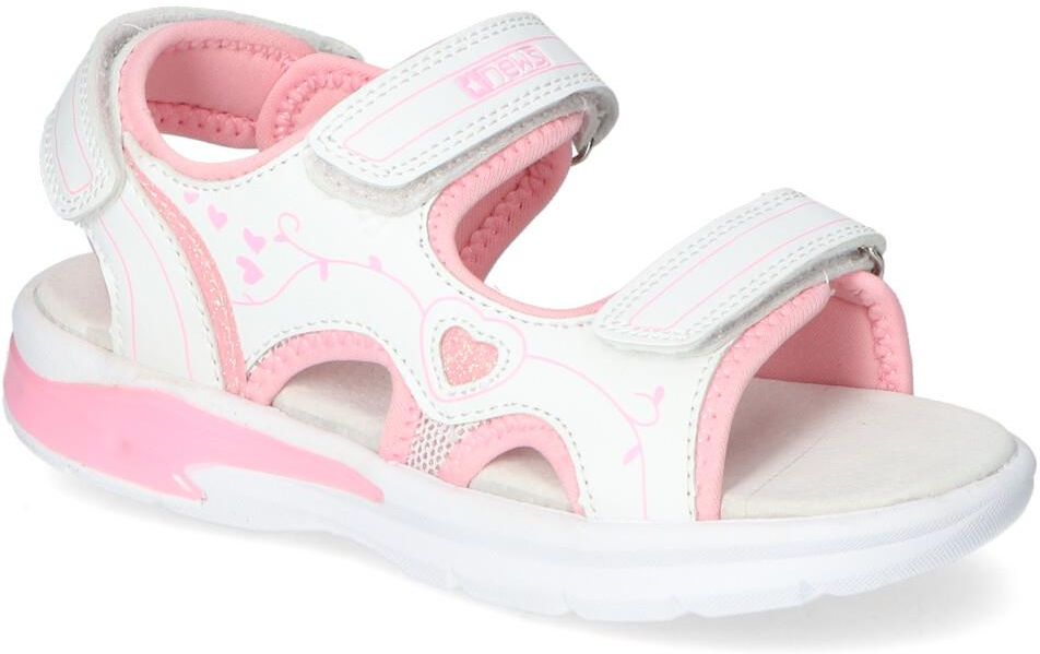 Wygodne, piękne sandały dziecięce idealne na lato!: - cholewka wykonana została z wysokiej klasy tworzywa syntetycznego - wnętrze pokryte zostało materiałem, aby zapewnić komfort podczas użytkowania - wygodna wkładka wewnętrzna wykonana została z wysokiej klasy materiału tekstylnego - zapięcie na rzep ułatwia dopasowanie obuwia do tęgości stopy i ułatwia zakładanie - podeszwa o grubości 2 cm doskonale stabilizuje stopę i izoluje od podłoża - piękny, modny biały kolor z dodatkiem różu oraz ponadczasowy styl zadowolą każdego!