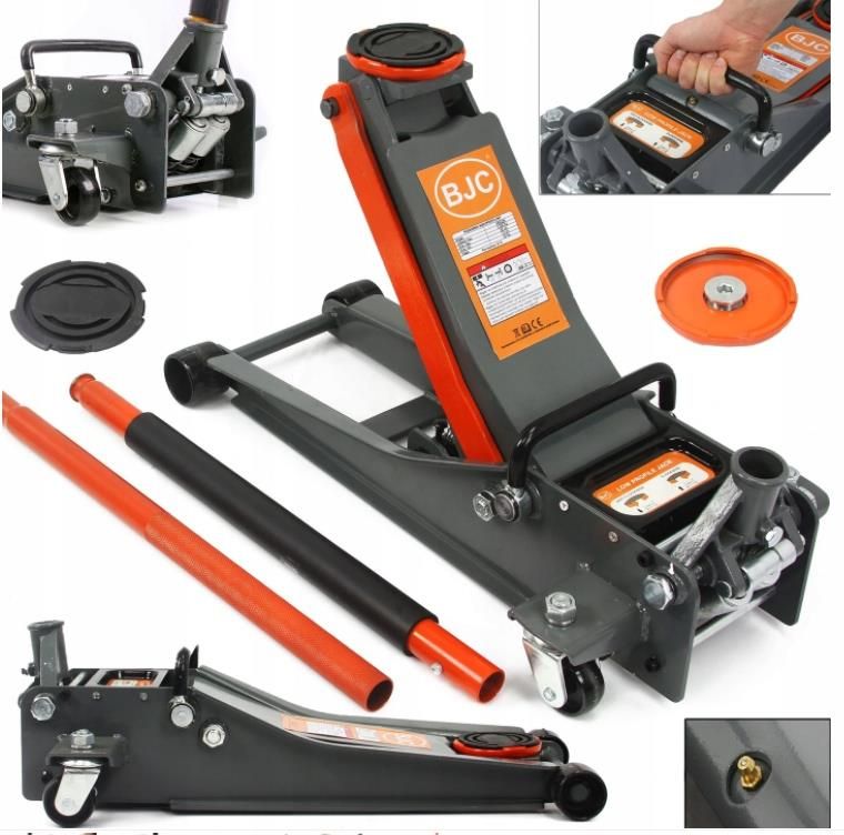 Bjc Podnośnik Niskoprofilowy 75Mm Lewarek Żaba 3T M80234 Posiada zawór spustowy zintegrowany z zaworem bezpieczeństwa. Podnośnik BJC został wyposażony w podwójną pompę, co sprawia że siłownik pracuje 2 x szybciej niż w przypadku pojedynczej pompy. Profesjonalne, solidne narzędzie wykonane z bardzo mocnego i odpornego na złe warunki atmosferyczne materiału. Waga podnośnika to 32kg - świadczy o jakości zastosowanych materiałów. Praktyczny podnośnik samochodowy, wyposażony w koła jezdne, dzięki czemu łatwo się go przemieszcza. Dane techniczne: Producent: BJC Model: M80234 Maksymalny udźwig: 3000kg/3T Wysokość minimalna: 7,5CM Wysokość maksymalna: 50CM Waga: 32kg Wymiary podnośnika: wysokość minimalna: 75 mm wysokość maksymalna: 500 mm szerokość podnośnika przód: 270 mm szerokość podnośnika tył: 360 mm wysokość podnośnika tył: 150 mm wysokość podnośnika całk.: 1300 mm długość podnośnika całk: 700 mm Cechy: Podnośnik pozwala nam na pracę w bardzo zróżnicowanych zakresach min-max (75 - 500mm) Podnośnik BJC został wyposażony w praktyczną rączkę, z dwoma funkcjonalnościami! Karbowana rękojeść zwiększająca maksymalnie pewność chwytu Gumową osłonę zabezpieczającą karoserię samochodu przed przypadkowym uszkodzeniem