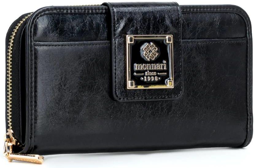 Portfel damski Monnari czarny – elegancki portfel ze skóry ekologicznej, duży i praktyczny Michałowo