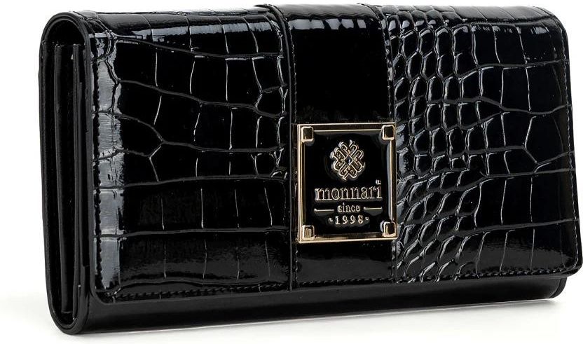 Portfel damski Monnari czarny lakier krokodyl – elegancki portfel ze skóry ekologicznej Michałowo