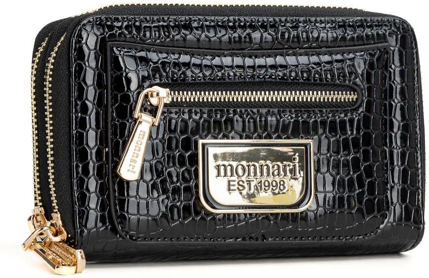 Portfel damski Monnari czarny lakier wąż – elegancki portfel ze skóry ekologicznej, dwukomorowy i praktyczny Michałowo
