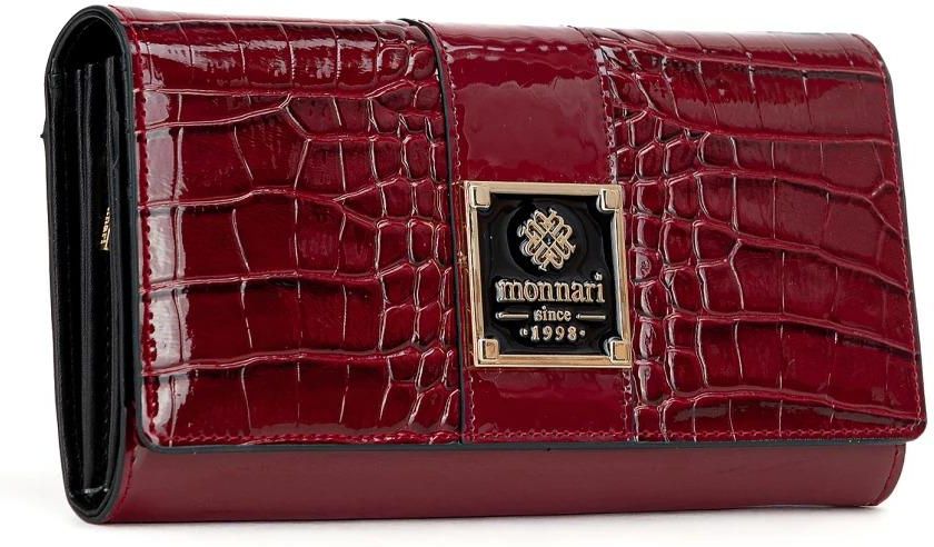 Portfel damski Monnari czerwony lakier krokodyl – elegancki portfel ze skóry ekologicznej Michałowo