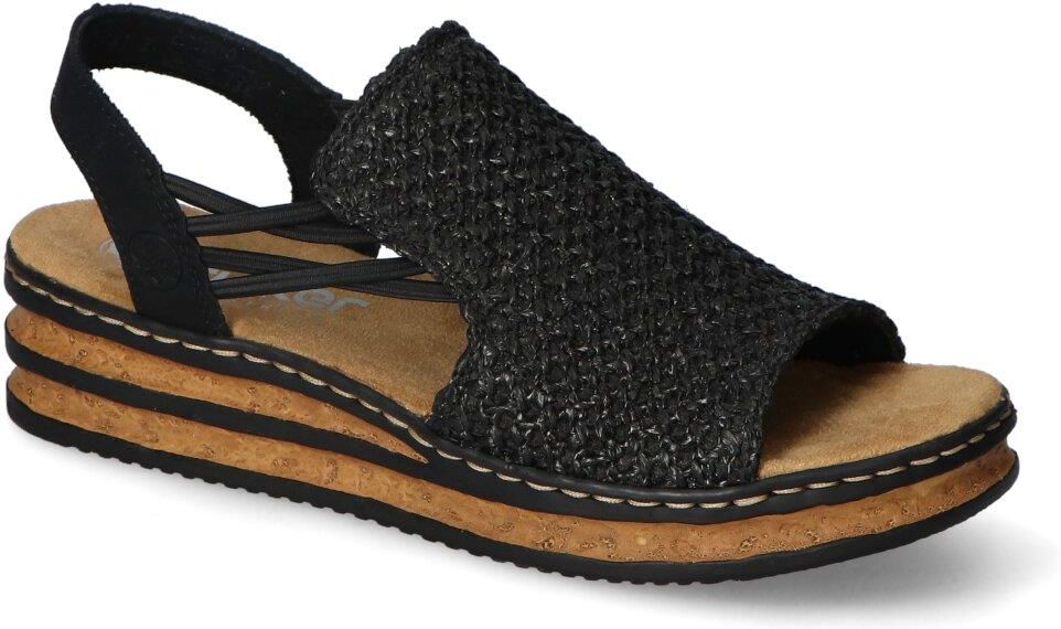 Wyjątkowe sandały firmy Rieker: - wykonane z wysokiej jakości skóry ekologicznej i materiału tekstylnego - wkładka wewnętrzna wykonana z materiału tekstylnego - wnętrze pokryte zostało materiałem aby zapewnić komfort podczas użytkowania - podeszwa o grubości 4,5 cm zapewnia odpowiednią stabilizację - klasyczny czarny kolor i modny fason tworzą niesamowite połączenie!