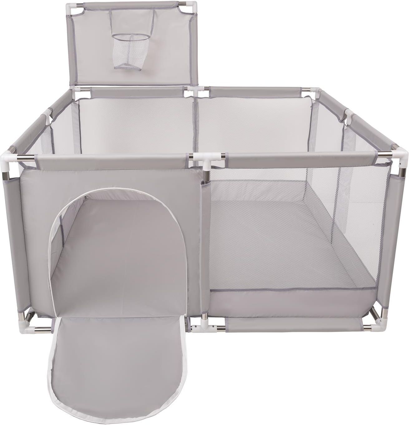 KK-100X-33-GREY Selonis Boisko KK-100X z piłeczkami 6cm szary: biały-szary-pudrowy róż 125x125x105/100piłek Zabawka kojec Składany kojec z plastikowymi piłkami w kształcie mini-boiska zapewni Twojemu dziecku godziny zabawy. Wewnątrz jest wystarczająco dużo przestrzeni, aby w zabawie mogło uczestniczyć swobodnie kilkoro dzieci. Jednocześnie kojec można w łatwy sposób złożyć, dzięki czemu można go schować, lub zabrać ze sobą na wczasy, piknik, czy do znajomych. Jedna ze ścianek jest wyposażona w siatkowy kosz do koszykówki umożliwiając małym dzieciom rywalizację w grze zespołowej. WŁAŚCIWOŚCI - stabilna konstrukcja z aluminiowymi rurkami umożliwia łatwo go złożyć i rozłożyć - kojec wyposażony w boczne wejście z zamkiem błyskawicznym ułatwiające wejście i wyjście dla małych dzieci - boczne ścianki wykonane z siatki umożliwiają obserwację dzieci podczas zabawy, ortalion o wysokiej gramaturze jest wytrzymały i nie strzępi się - zamknięta konstrukcja utrzymuje piłeczki wewnątrz pomagając zachować porządek - delikatne kolory materiału i mnóstwo kombinacji piłek pozwalają dobrać odpowiedni wariant dla Twojego malucha lub dostosować kojec do każdego wnętrza - wyprodukowany z bezpiecznych, nietoksycznych materiałów - gładka powierzchnia, łatwa do utrzymania w czystości SKŁAD: ortalion 100% poliester WYMIARY: 125x125x66 cm, wysokość z koszem 105 cm W zestawie znajdują się kolorowe piłki o średnicy 6 cm. Piłeczki wyprodukowane są w Europie z nietoksycznego materiału. Posiadają certyfikat CE. Przyjemne i lekkie, a zarazem elastyczne i odporne na zniekształcenia : po ściśnięciu odzyskują swój pierwotny kształt nie robiąc dziecku krzywdy. SKŁAD: 100% polietylen Zabawa powinna odbywać się pod nadzorem osoby dorosłej.