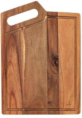Akacjowa deska do krojenia Smile odporna na zarysowania, nacięcia oraz odkształcenia, nie wchłania wilgoci ani zapachów, szybko schnie po umyciu, posiada ergonomiczny uchwyt.