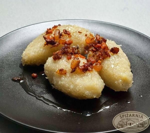 Kartacze z mięsem około 0,500 kg (3 szt) Kartacz, także cepelin – potrawa regionalna, popularna w północno-wschodniej Polsce; rodzaj dużej, nadziewanej pyzy ziemniaczanej. Gotowa kluska ma kształt owalny, w przekroju poprzecznym okrągły i długość od 10 do 12 cm. Ciasto przygotowuje się z masy powstałej przez połączenie tartych surowych ziemniaków z ziemniakami gotowanymi lub z mąką ziemniaczaną. Dodaje się też skrobię uzyskaną przy ścieraniu surowych kartofli. Zawartość surowych ziemniaków nadaje kartaczom szarą barwę. Nadzienie to zazwyczaj mięso mielone (przyprawione np. czosnkiem, pieprzem czarnym i cebulą). Kartacze gotuje się w wodzie i podaje na gorąco, zwykle okraszone skwarkami z boczku lub z posiekaną i zeszkloną cebulą. Potrawa jest najbardziej popularna na Podlasiu, Suwalszczyźnie, Warmii i Mazurach. Na Litwie uchodzi za danie narodowej i jest najpopularniejszym daniem w wielu restauracjach. W zależności od regionu nieco różni się sposób przygotowania cepelinów, jak i podanych do niego sosów. Produkty są zamykane hermetycznie i zachowują odpowiednią temperaturę do czasu dostarczenia do klienta. Gwarantujemy dostawę świeżych produktów nawet w upalne dni! Wysyłamy nasze produkty na terytorium całej Polski, koszt wysyłki jest zależny od wagi zamówionych produktów. Kiszka jest przygotowywana w środę więc wysyłki zawsze w czwartek Na pytania dlaczego za słone, za mocno uwędzone itp.odpowiadamy: "A ta szynka to ostatnio była mniej słona, a teraz trochę bardziej, a ten salceson miał trochę inny kolor. Ano proszę Państwa tak właśnie ma być ! Bo to nie jest masowa produkcja i jej największym atutem jest lekka różnorodność. To że w danej porze roku nieco inaczej się wędzi, bo wiatr jest inny To, że mięso ma lekko inny odcień - bo go nie malujemy i nie opryskujemy To, że nawet nasza receptura czasem zachowa się nieco inaczej bo taki ma kaprys - a my to oczywiście kontrolujemy, ale nie zmieniamy na siłę. Tak ma być. Identycznie to tylko na sterowanej mechanicznie linii produkcyjnej pomaga natura."