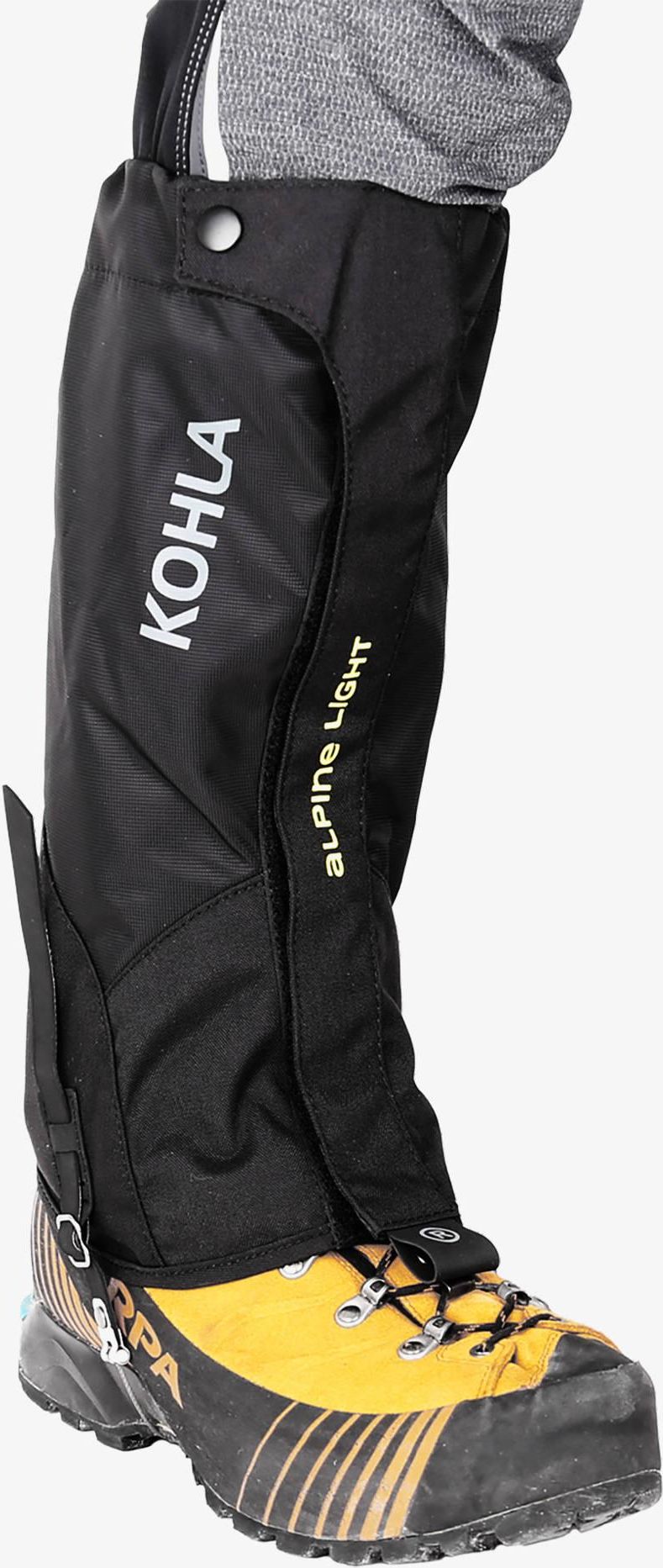 Stuptuty Kohla Alpine Light to para lekkich ochraniaczy dedykowanych do użytku w śniegowych i lodowych warunkach. Stuptuty wykonano z materiału Cordura®, a konstrukcja ochraniaczy zyskała dodatkowe wzmocnienie na dole. Model zapinany jest suwakiem, a pewne mocowanie pod butem zapewnia stalowa linka. Model, który właśnie oglądasz, oferuje ochronę przed wilgocią i wodą na poziomie 1 000 mm słupa wody. Stuptuty Kohla Alpine Light za sprawą wysokiej konstrukcji pod kolana kompleksowo zabezpieczają buty oraz nogawki spodni przed wilgocią, błotem i śniegiem. Stuptuty Kohla Alpine Light zapewniają wygodne dopasowanie do butów oraz łydki użytkownika. Ich stabilność po założeniu wynika z zapięcia na zamek oraz zastosowania dodatkowych zatrzasków i rzepów. Redukują one ryzyko zsuwania się ochraniaczy w trakcie wędrówki. Stuptuty z linka stalową Kohla Alpine Light to model, w którym postawiono na wytrzymałość. Wykonane zostały z materiału Cordura® cechującego się wysoką odpornością na uszkodzenia mechaniczne. Dodatkową stabilność ochraniaczy zapewnia mocowanie pod butem w postaci stalowej linki. Stuptuty Kohla Alpine Light - najważniejsze cechy:Zaprojektowane z myślą o użytku w śniegu i lodzie;Model oferujący podwyższoną ochronę przed wodą na poziomie 1 000 mm słupa wody;Konstrukcja z wytrzymałego materiału Cordura®;Wzmocniony dół;Zapinane na zamek błyskawiczny chroniony warstwą materiału;Zaczep na sznurówki;Precyzyjne dopasowanie górnego mankietu zapewnia rzep oraz zatrzaski;Mocowanie pod butem przy pomocy stalowej linki;Wyjątkowo niska waga: jeden ochraniacz ~ 124 g.