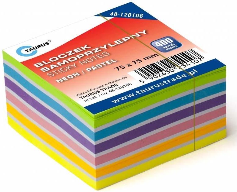 Taurus Bloczek Samoprzylepny 75X75Mm 400 Kartek Neon Pastel Michałowo