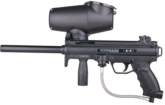 Tippmann A5 Basic to bardzo popularny marker półautomatyczny, ceniony zwłaszcza przez graczy leśnych za swoją niezawodność i szerokie możliwości rozbudowy. Wyposażony jest w zasilany gazem Cyclone Feed System, podający nawet do 15 bps. Marker szybki w serwisowaniu i czyszczeniu bez użycia narzędzi dzięki konstrukcji rozbieralnej po wyjęciu pinów. Posiada trwałe aluminiowe body, zintegrowane przyrządy celownicze, łatwy do operowania kciukiem bezpiecznik - switch selector, lufę 8,5 cali z gwintem A5. Pracuje na Co2 jak i na HP. Może być łatwo upgrade'owalny m.in. poprzez zastosowanie Response Trigger System czy też E-Grip'a.