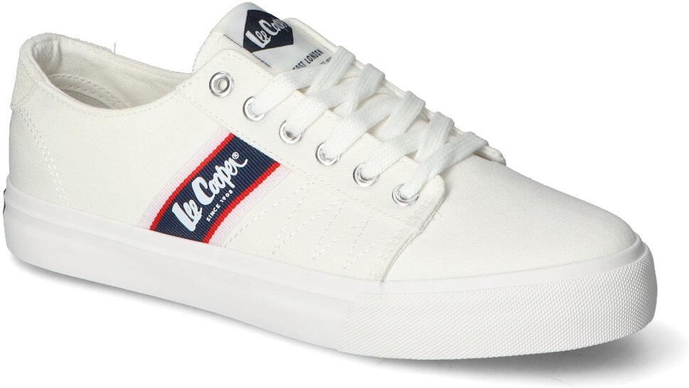 Modne trampki popularnej firmy Lee Cooper:- wykonane z najlepszej jakości materiałów tekstylnych - wnętrze wykonane z wygodnego materiału dla zapewnienia wygody - miękka materiałowa wkładka gwarantuje komfort- podeszwa o grubości 2 cm zapewnia odpowiednią stabilizację stopy - sznurowana cholewka zapewnia dopasowanie obuwia do tęgości stopy - biały kolor oraz modny fason tworzą idealne połączenie, które zachwyci każdego!
