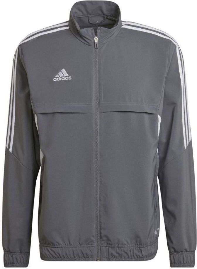 Bluza męska adidas Condivo 22 Presentation szara HD2272 Bluza dla mężczyzn adidas sprawdzi się podczas treningów. Technologia Aeroready pochłania wilgoć pozostawiając uczucie świeżości. Wysokiej jakości materiał. Wysoka stójka i zamek na całej długości. Dopasowany krój. Zapinane kieszenie boczne. Materiał: 100% poliester z recyklingu