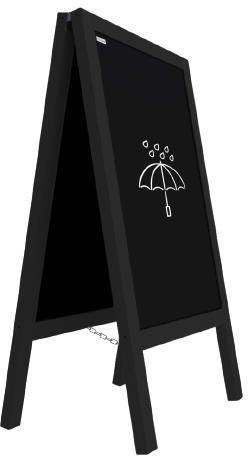 Potykacz wodoodporny z CZARNĄ lakierowaną ramą 118x61cm - stojak reklamowy POWIERZCHNIA - potykacz wyposażony jest w czarną, kredową tablicę do pisania, wykonaną z tworzywa sztucznego ABS. Zapewnia jej to pełną odporność na wodę! Jest bardzo trwała, można po niej pisać kredą oraz markerami kredowymi. Płyta znajduje się z obu stron produktu, co czyni go dwustronnym! RAMA - potykacz wykonany jest z wysokiej jakości drewna. Zostało ono pokryte kolorowym lakierem, co zapewnia mu elegancki czarny kolor oraz wodoodporność, zachowując przy tym naturalną strukturę drewna i układ słojów. WYKORZYSTANIE - stojak kredowy jest doskonałym nośnikiem reklamy i informacji. Dzięki powierzchni wielokrotnego użytku, można umieszczać tam na bieżąco informacje o lokalu, aktualne menu, specjalne oferty, wskazówki na temat dotarcia do lokalu lub firmy. UNIWERSALNY - potykacz reklamowy pasuje do każdego miejsca! Wykorzystasz go w: restauracji, firmie, lokalu, barze, kawiarni, kwiaciarni, lodziarni. Jest też świetną tablicą do wykorzystania w domu, jako tablica kreatywna dla dziecka! GOTOWY DO UŻYCIA - potykacz jest gotowy do użycia natychmiast po wyjęciu z pudełka. Nie musisz nic skręcać, sklejać ani łączyć! Zapewniamy komfortowe i łatwe użytkowanie! POLSKA PRODUKCJA - nasz potykacz to produkt w pełni zaprojektowany i wyprodukowany w Polsce. Stworzony z pasją, co zapewnia wysoką jakość i dbałość o szczegóły. Jest niezawodnym rozwiązaniem dla Twojej firmy! Wymiary potykacza szerokość całkowita: 61 cm wysokość całkowita: 118 cm rozmiar wewnętrzny: 80x53cm szerokość listwy: 5 cm grubość listwy: 3 cm wysokość nóżki: 30 cm W zestawie znajduje się również łańcuszek połączeniowy! Solidna konstrukcja Sercem potykacza jest kredowa konstrukcja. Przykuwa uwagę Klienta i zapewnia długie użytkowanie bez utraty walorów estetycznych. Uniwersalny i praktyczny Potykacz firmy ALLboards jest bardzo uniwersalny. Możesz wykorzystać go wszędzie gdzie tylko zechcesz, w szczególności: w restauracji w sklepie w kawiarni w kwiaciarni w pubie w barze Jego elegancki wygląd pasuje również do wykorzystania wewnątrz firmy czy też prywatnego domu! Potykacz jest przeznaczony do użytku wewnętrznego i zewnętrznego. Jest odporny na opady deszczu oraz śniegu! Nośnik informacji Dzięki potykaczowi przekażesz swoim Klientom wszystkie niezbędne informacje: informacje o swoim lokalu menu specjalne oferty wskazówki na temat dotarcia do lokalu/firmy Nic nie stoi na przeszkodzie, aby potykacz ozdobić również przykuwającymi uwagę rysunkami! UWAGA Nasze wodoodporne potykacze kupują Państwo gotowe do użytkowania, przed wilgocią drewno jest zabezpieczone za pomocą impregnatu, który wnika głęboko w strukturę materiału i dobrze chroni go przed szkodliwym wpływem czynników atmosferycznych. Aby jednak potykacz służył wiele lat, najlepiej co roku, przed rozpoczęciem sezonu, impregnować go we własnym zakresie. Jak to zrobić? Przed rozpoczęciem impregnacji rama potykacza powinna być sucha i oczyszczona. Następnie postępujemy zgodnie z zaleceniami zamieszczonymi na etykiecie impregnatu. Większość z nich można nakładać pędzlem, wykonując długie płynne pociągnięcia zgodnie z kierunkiem usłojenia. Czas schnięcia wynosi od kilku do kilkudziesięciu godzin, zależnie od wyrobu.