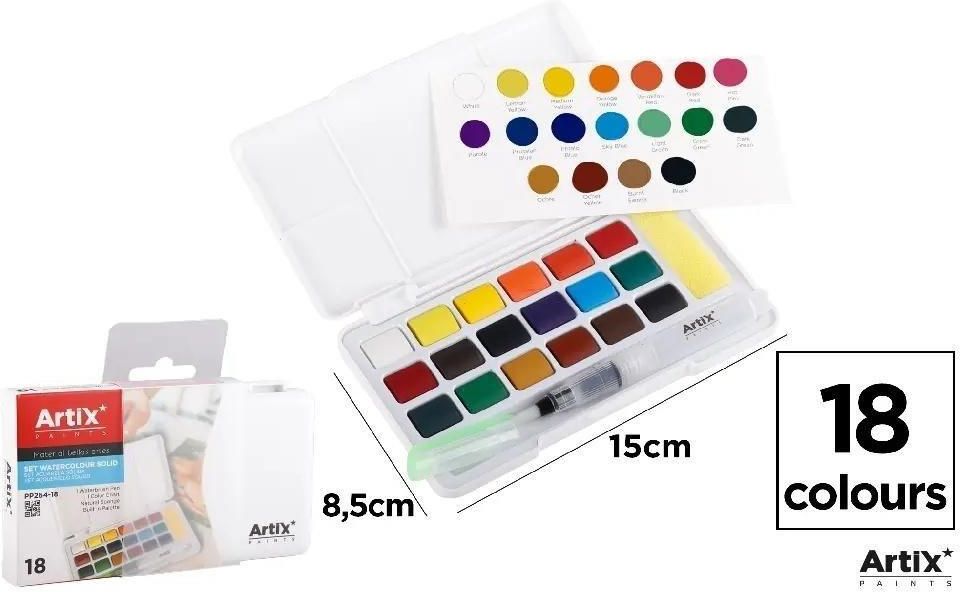 Artix Farba Akwarelowa Z Pędzlem Wodnym 18 Kolorów Miechów