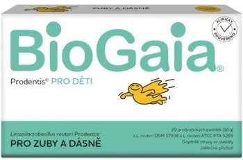 Pastylki probiotyczne BioGaia Prodentis PRO CHILDREN to suplement diety przeznaczony do pielęgnacji mikroflory jamy ustnej, zębów i dziąseł. Zawierają opatentowany szczep probiotyczny L. reuteri Prodentis (L. reuteri DSM17938 i L. reuteri ATCC PTA 5289) o łagodnym jabłkowym smaku.