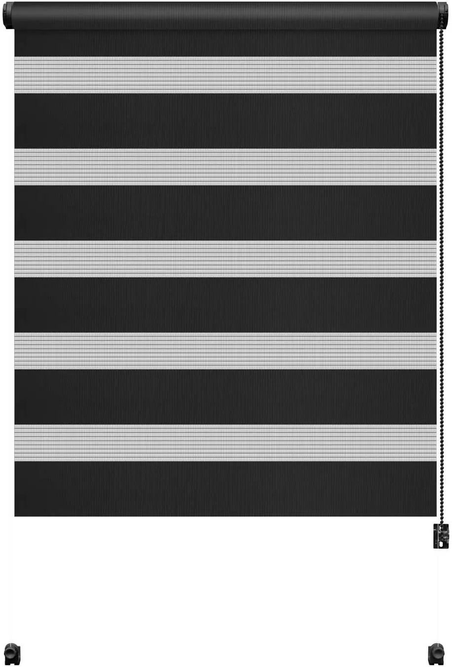 Gardinia Roleta MINI ZEBRA Black 729 64 x 150 cm czarna Praktyczna i estetyczna roleta w modnym, czarnym kolorze potrafi całkowicie odmienić wygląd wnętrze, nadając mu nowoczesny i wyrazisty charakter. Elegancki wygląd i kolorystyka Roleta wyróżnia się nowoczesnym designem z tkaniną tkaną w gęste i rzadkie pasy oraz czarnym kolorem mechanizmów i akcesoriów. Dzięki swojej eleganckiej formie doskonale sprawdzi się w każdym pomieszczeniu, stanowiąc stylowy element dekoracyjny okna. Montaż i obsługa Produkt jest przeznaczony do instalacji na skrzydle okiennym, co pozwala na jego swobodne otwieranie razem z oknem. Roleta została wyposażona w żyłkowe prowadzenie boczne, które skutecznie utrzymuje tkaninę przy ramie nawet przy uchylonym oknie. Regulacja dopływu światła Specjalna tkanina typu dzień/noc umożliwia płynną regulację dopływu światła poprzez nachodzenie na siebie pasów o różnej gęstości splotu. Takie rozwiązanie pozwala na precyzyjne dopasowanie stopnia nasłonecznienia do aktualnych potrzeb użytkownika, zapewniając komfort i prywatność.