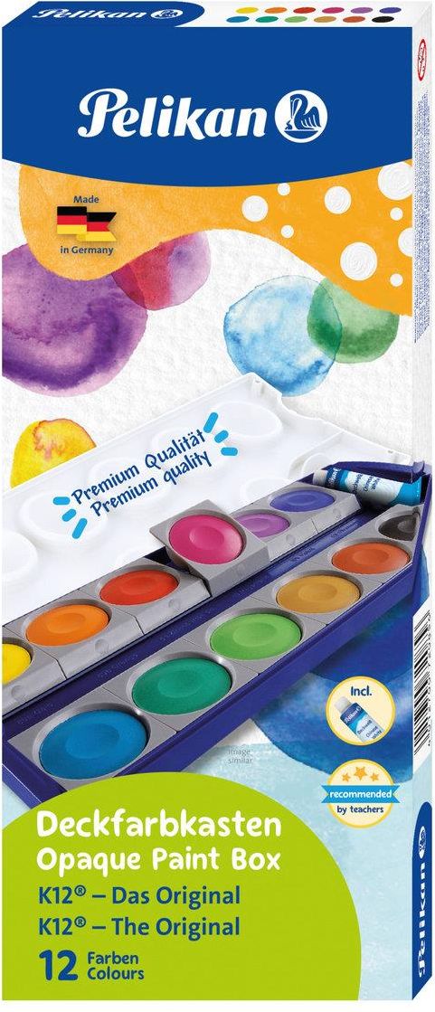 Farby wodne K12 Te fantastyczne farby wodne są idealnym wyborem dla szkolnej twórczości. Dzięki nowemu, atrakcyjnemu designowi, są nie tylko praktyczne, ale też estetyczne. Wykorzystują kolory o wysokiej jakości, które są odporne na promieniowanie słoneczne, aby zapewnić olśniewające efekty. Dodatkowo, zestaw zawiera tubkę białej farby do rozjaśniania, zgodną ze standardem DIN 5023. Wszystkie farby są szybkorozpuszczalne, a ich zbiorniczki są wyjmowane, co ułatwia ich użytkowanie. Wyjmowane wieczko, które można wykorzystać jako paletkę do mieszania kolorów, jest kolejnym praktycznym rozwiązaniem. Na wieczku znajduje się specjalne miejsce umożliwiające oznaczanie farb swoim imieniem. Dzięki dużemu przyciskowi, otwieranie i zamykanie zestawu jest niezwykle wygodne. Uzupełnieniem dla tych farb jest pojemnik na wodę. Kreatywność i bezpieczeństwo W zestawie farb wodnych K12 znajduje się 12 kolorów, które odkryją przed dziecięcą, a także dorosłą kreatywnością, nieskończone możliwości kreowania. Pozwalają na zastosowanie wielu technik malarskich, co sprawia, że są dopasowane do potrzeb każdego artysty. Farby te są nietoksyczne i łatwo zmywalne, gwarantując bezpieczeństwo podczas zabawy dla dzieci i dorosłych. Intensywne kolory Farby wodne K12 prezentują intensywne, żywe kolory, które dodadzą niepowtarzalnej magii każdemu dziełu. Umożliwiają kreowanie fascynujących, kolorowych obrazów, które przyciągną spojrzenia i staną się ozdobą każdej przestrzeni. Pragniemy podkreślić, że kolory są odporne na promieniowanie słoneczne, co podkreśla ich wysoką jakość. EAN: 4012700720856