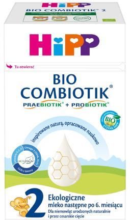 Hipp 2 Bio Combiotik Ekologiczne Mleko Następne Dla Niemowląt Po 6. Miesiącu 550 G HIPP __________________________________________________________________ HiPP 2 BIO Combiotik z unikalnym połączeniemPreabiotikGalaktooligosacharydy (GOS) z ekologicznej laktozy. Laktoza stanowi główne źródło węglowodanów w pokarmie kobiecym. Dlatego GOS również naturalnie występuje w mleku matki. ProbiotikNaturalne k-tury bakterii kwasu mlekowego (L. fermentum) pierwotnie pozyskane z mleka matki. Pokarm kobiecy zawiera bardzo różnorodne k-tury bakterii - ich rodzaj jest indywidualną cechą każdej kobiety. Metafolin: źródło folianów na wzór mleka mamy. Witaminy A, C i D: wspierają układ odpornościowy. * Kwas dokozaheksaenowy (DHA) z grupy Omega-3: ważny dla prawidłowego rozwoju narządu wzroku u niemowląt. Korzystne działanie występuje w przypadku spożywania 100 mg DHA dziennie.*Kwas alfa-linolenowy (ALA) z grupy Omega-3: ważny dla rozwoju mózgu i komórek nerwowych.Mleko HiPP 2 BIO Combiotik, zgodnie z przepisami prawa reg-ującymi skład mleka dla niemowląt, zawiera witaminy A, C i D oraz kwas dokozaheksaenowy (DHA) i kwas alfa-linolenowy (ALA). Dla zadowolonych małych brzuszków. Inspirowane naturą, opracowane naukowoW harmonii z naturą - od 30 lat najlepsze składniki ekologiczne w naszej wyjątkowej jakości HiPP BIO. Produkt z certyfikatem ekologicznym. Znak HiPP BIO to gwarancja najwyższej jakości ekologicznej - jeszcze wyższej niż wymagana przepisami prawa. ZastosowanieMleko następne HiPP 2 BIO Combiotik jest dopasowane do szczególnych potrzeb żywieniowych niemowląt po 6. miesiącu życia, które z różnych powodów nie mogą być karmione piersią. Mleko HiPP 2 BIO Combiotik jest odpowiednie po zakończeniu karmienia piersią lub każdym mlekiem początkowym. 50 lat doświadczenia i badań nad mlekiem dla niemowląt Pierwsza łyżeczka HiPP BIO - skład i porcja idealne na początekRozszerzanie diety zacznij od ekologicznych warzyw i owoców HiPP BIO w słoiczkach 80 g praebiotik + probiotik. nowość teraz z Metafolin***. inspirowane naturą, opracowane naukowe. witaminy A, C, D. omega 3 (DHA, ALA)*. GOS z laktozy. BIO - jakość, za którą ręczę - Stefan Hipp. *Omega-3 (DHA, ALA) wspiera rozwój narządu wzroku, mózgu i komórek nerwowych. ***Metafolin jest zarejestrowanym znakiem towarowym firmy Merck KGaA, Darmstadt, Niemcy Climate-neutralZ zakładu produkcyjnego o neutralnym bilansie emisji CO2 - w ramach wspierania globalnych projektów ochrony klimatu. __________________________________________________________________ EAN: 4062300409873 Fosfor: 44 mg/100ml Alergeny: : Dwutlenek siarki i siarczyny: Nie Gorczyca i produkty pochodne: Nie Biotyna (witamina B7): 1,6 μg/100ml Cynk: 0,50 mg/100ml Dla dzieci w wieku: Po 6 miesiącu FSC - Data ważności certyfikatu: 2023-02-26 FSC - Forest Stewardship Council: 1 FSC - Numer certyfikatu: FSC® TT-C0C-002309 Chlor: 52 mg/100ml Fluor: 0,010 mg/100ml Kraj pochodzenia: Produkt UESposób przechowywania: Przechowywać w temperaturze otoczeniaSposób użycia: Sposób przygotowaniaPodczas przygotowania mleka dla niemowląt należy postępować według instrukcji. Niewłaściwe przygotowanie lub przechowywanie gotowego posiłku przez dłuższy czas mogą doprowadzić np. do rozwoju niepożądanych drobnoustrojów, a tym samym zaszkodzić zdrowiu Twojego dziecka. Dlatego każdy posiłek powinien być świeży, przygotowany tuż przed podaniem dziecku. Nie podawaj ponownie reszty mleka pozostałej w bu-ce. Pamiętaj o dokładnym umyciu bu-ki, smoczka i nakrętki. Nie podgrzewaj mleka w kuchence mikrofalowej (niebezpieczeństwo poparzenia!). Dokładnie zamknij torebkę i przechowuj ją w suchym miejscu, w pokojowej temperaturze. Zawartość opakowania zużyj w ciągu 3 tygodni po otwarciu.1. Przegotuj świeżą wodę pitną i ostudź ją do temperatury ok. 40°-50°C*.2. Do bu-ki wlej potrzebną ilość przegotowanej i schłodzonej wody.3. Luźno napełnij miarkę proszkiem, a jego nadmiar usuń w miejscu wskazanym na opakowaniu. Zalecaną liczbę miarek proszku wsyp do bu-ki.4. Zakręć bu-kę i kilka razy silnie wstrząśnij.5. Tuż przed podaniem ostudź mleko do ok. 37°C. Sprawdź temperaturę.* W celu ochrony naturalnych k-tur bakterii kwasu mlekowego nie zalewaj proszku wrzątkiem.Objętość porcji i dozowaniePoniższa tabela pomoże Ci prawidłowo przygotować porcję mleka dla Twojego dziecka. Zaproponowane objętości porcji należy traktować orientacyjnie, gdyż każde dziecko ma inne potrzeby żywieniowe. Dziecko nie musi opróżniać bu-ki za każdym razem.Do odmierzenia odpowiedniej ilości proszku używaj wyłącznie załączonej miarki!Objętość porcji 170 ml / Przegotowana woda 150 ml / Liczba miarek 5Objętość porcji 200 ml / Przegotowana woda 180 ml / Liczba miarek 6Objętość porcji 235 ml / Przegotowana woda 210 ml / Liczba miarek 730 ml wody przypada na jedną miarkę proszkuNiemowlę powinno spożywać ok. 5 posiłków dziennie. Każda pełna porcja nowego posiłku (kaszki, obiadku) zastępuje 1 bu-kę mleka.Ważne wskazówki... dotyczące żywienia Twojego dzieckaWyłączne karmienie piersią w pierwszych sześciu miesiącach życia jest najlepszym sposobem żywienia Twojego dziecka. Mleko HiPP 2 BIO Combiotik, tak jak żadne inne mleko następne, nie powinno być podawane w celu zastąpienia mleka matki w tym okresie życia, lecz dopiero po 6. miesiącu. Mleko HiPP 2 BIO Combiotik stanowi tylko część zróżnicowanej diety niemowlęcia. Ze względu na indywidualne tempo wzrostu i szczególne potrzeby żywieniowe Twojego dziecka może być wskazane podanie mleka następnego jako części zróżnicowanej diety jeszcze przed ukończeniem szóstego miesiąca życia. Jednak decyzję o rozpoczęciu rozszerzania diety niemowlęcia skons-tuj z lekarzem pediatrą. Zadbaj o zrównoważoną dietę i zdrowy tryb życia swojego dziecka.... dotyczące ochrony ząbków Twojego dzieckaTak jak