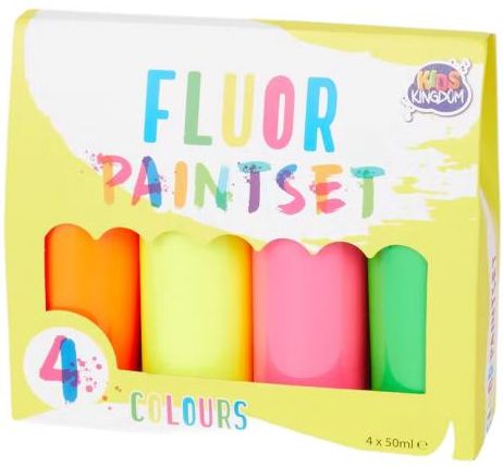 ZESTAW FARB DO MALOWANIA 4x50ML 4 różne kolory farby w opakowaniu kolory neonowe wymiary opakowania : 12.8 x 12 x 3.2 cm Pokaż się od kreatywnej strony i stwórz najpiękniejsze dzieła za pomocą 4-kolorowego zestawu farb.