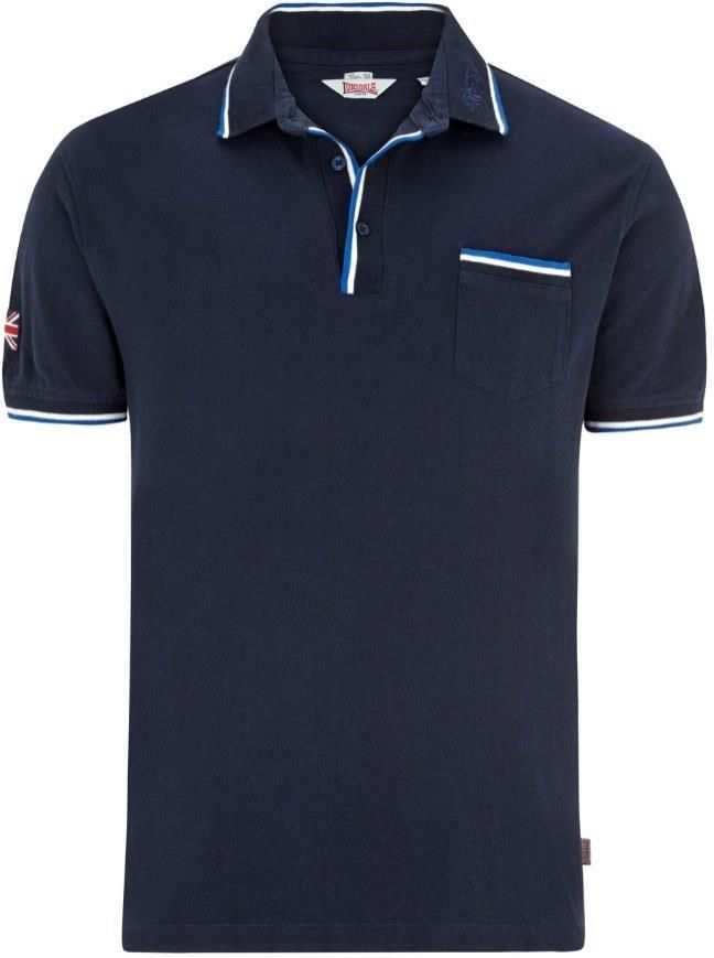 Koszulka polo marki Lonsdale Na prawym rękawku haftowana flaga Wielkiej Brytanii. Koszulka zapinana na 3 guziki . Ściągacze na rękawach i kołnierzyk w kolorze biało/niebieskim . Na piersi kieszonka Kolor: granatowy Krój :Slim Fit Skład: 100% bawełna. Gramatura: 210 g/m