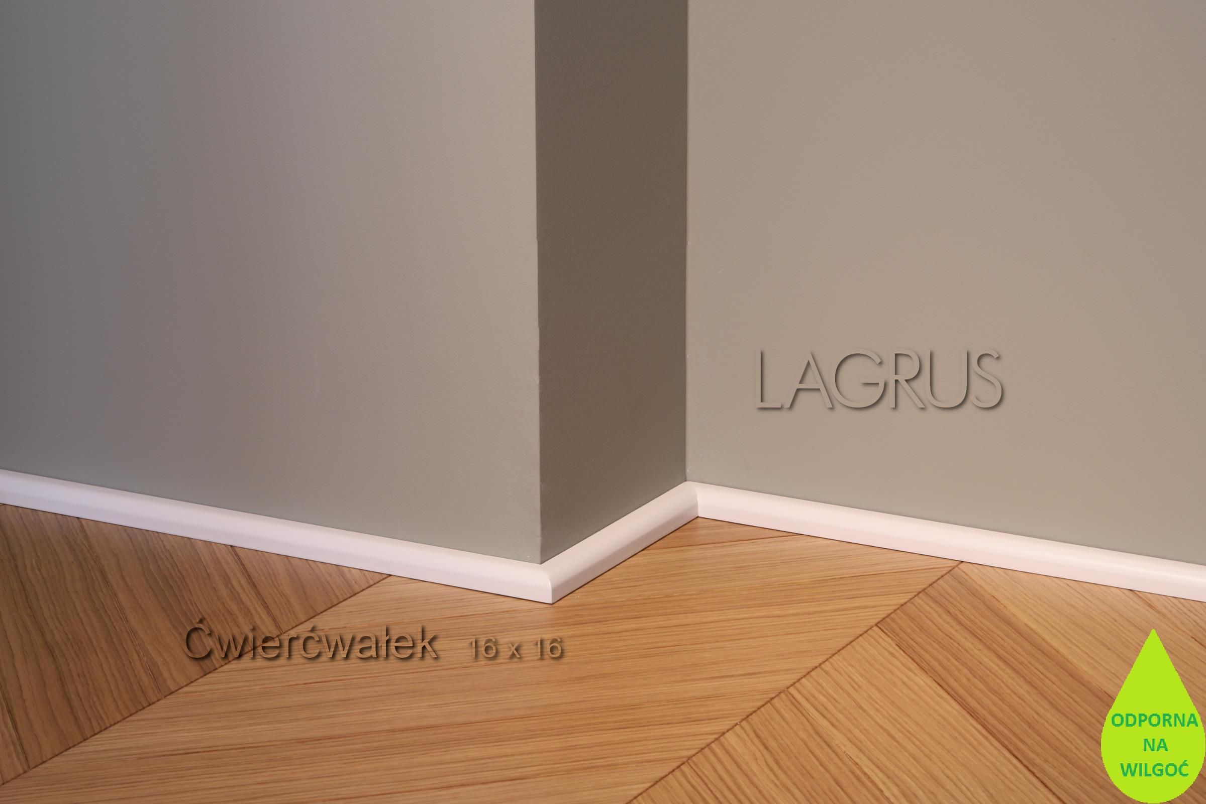 Lagrus Ćwierćwałek Biały 16X16X2440Mm Ćwierćwałek Biały 16X16X2440Mm od renomowanego producenta Lagrus to doskonałe rozwiązanie dla każdego, kto pragnie zadbać o estetykę swojego wnętrza. Listwy przypodłogowe pełnią nie tylko funkcję dekoracyjną, ale również praktyczną, maskując szczeliny między ścianami a podłogą. Wybierając ten produkt, zyskujesz elegancki i wykończony wygląd pomieszczenia. Materiał wykonania Ćwierćwałek wykonany jest z wysokiej jakości MDF, który charakteryzuje się dużą odpornością na wilgoć. Płyty MDF to doskonałe rozwiązanie, które łączy w sobie trwałość oraz estetykę. Dzięki zastosowanym technologiom, listwy z tego materiału są bardziej odporne na działanie wilgoci, co sprawia, że idealnie nadają się do pomieszczeń narażonych na wilgotność, takich jak kuchnie czy łazienki. Dodatkowo, pokrycie tego modelu trzema warstwami lakieru poliuretanowego zwiększa jego trwałość, a także zapewnia łatwość w czyszczeniu oraz ochronę przed zarysowaniami. Wymiary Prezentowany produkt ma wysokość oraz grubość wynoszącą 16 mm, a jego długość to 2,44 mb. Te wymiary czynią go uniwersalnym rozwiązaniem, które można dostosować do większości standardowych pomieszczeń. Dzięki odpowiedniej grubości, ćwierćwałek doskonale maskuje wszelkie niedoskonałości, a jego wysokość sprawia, że staje się widocznym, ale nie przytłaczającym elementem w aranżacji wnętrza. Kolor i wykończenie Listwa wyróżnia się klasycznym, białym kolorem w odcieniu RAL 9003, co doskonale komponuje się z różnorodnymi stylami wnętrzarskimi. Dzięki lakierowanemu wykończeniu, jest łatwa do utrzymania w czystości. Dodatkowo, można ją malować, co pozwala na dostosowanie koloru do konkretnej palety barw w pomieszczeniu, co sprzyja stworzeniu spójnej i harmonijnej przestrzeni. Montaż Montaż listw jest prosty i szybki, co czyni je idealnym rozwiązaniem dla osób, które preferują samodzielne prace wykończeniowe. Można je instalować na klipsy, klej lub wkręty, co pozwala na dopasowanie metody montażu do specyfiki pomieszczenia i preferencji użytkowników. Najważniejsze cechy ćwierćwałka Zanim zdecydujesz się na zakup, zapoznaj się z kluczowymi cechami produktu: materiał: wykonany z odpornego na wilgoć MDF, wykończenie: lakier poliuretanowy zapewniający trwałość, wymiary: 16 mm wysokości i grubości, 2,44 mb długości, kolor: elegancki biały w odcieniu RAL 9003, łatwość montażu: różne metody instalacji, odporność na wilgoć: idealny do pomieszczeń o podwyższonej wilgotności. Decydując się na ćwierćwałek biały od Lagrus, inwestujesz w produkt, który łączy w sobie trwałość, estetykę oraz funkcjonalność. Z jego pomocą stworzysz elegancką przestrzeń, która będzie cieszyć oko przez długie lata, a jego uniwersalne cechy będą pasować do każdego wnętrza.