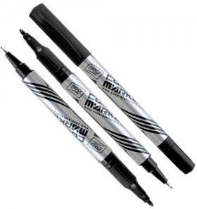 Marker dwustronny do płyt CD/DVD Marker specjalnie zaprojektowany do oznaczania płyt CD/DVD. Trwałe i niewymazywalne znakowanie. Nie rozmazuje się po nałożeniu na płytę. Zawiera dwie różne grubości linii do wyboru. Produkt dostępny w opakowaniu zwierającym 12 sztuk. EAN: 5901180333894