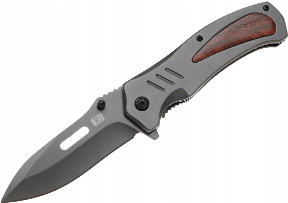 Nóż składany Głownia typu Drop point utwardza sztych dzięki czemu nóż bardzo dobrze tnie. Idealny nóż myśliwski, ale również roboczy Cechy produktu: Nóż wykonany z wysokiej jakości stali Uchwyt ze stalowych nakładek z drewnianym elementem Klips umożliwia zapięcie na pasek Rękojeść typu Frame lock Bardzo ostry Wygodnie leży w dłoni Scyzoryk składany Bardzo solidne wykonanie Długość ostrza: 9 cm Długość noża: 21 cm Długość noża złożonego: 12 cm